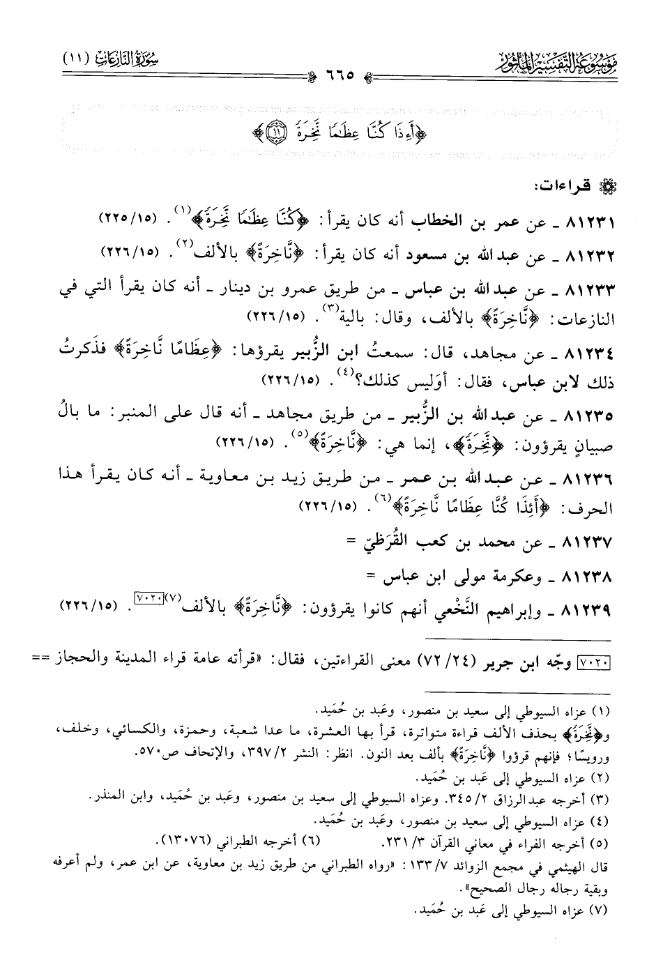 ٨١٢٣٩ - وإبراهيم النَّخْعي أنهم كانوا يقرؤون: «نَّاخِرَةً» بالألف (¬٧) [٧٠٢٠]. (١٥/ ٢٢٦)