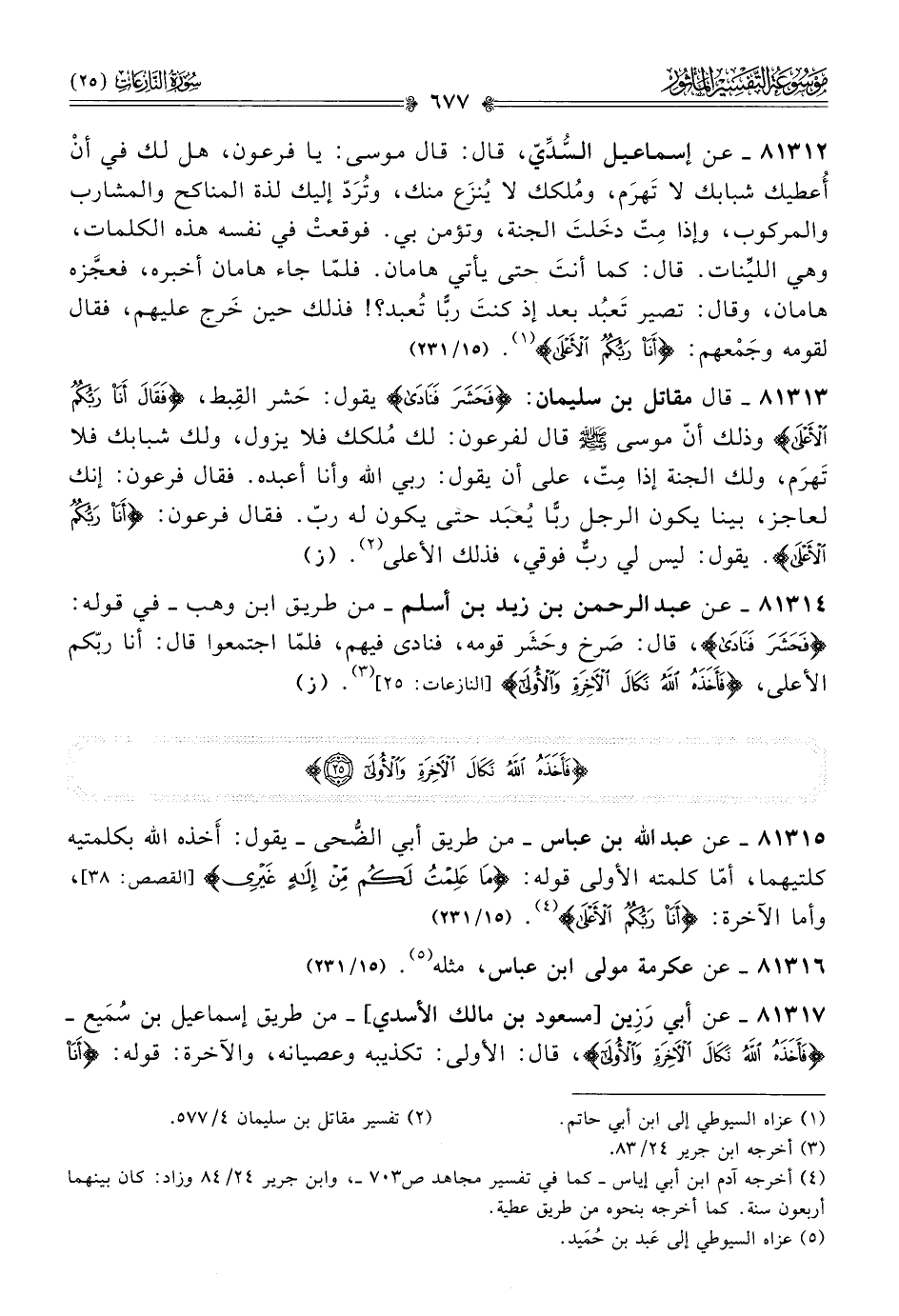 ٨١٣١٧ - عن أبي رَزِين [مسعود بن مالك الأسدي]-من طريق إسماعيل بن سُمَيع- {فَأَخَذَهُ اللَّهُ نَكالَ الآخِرَةِ والأُولى}، قال: الأولى: تكذيبه وعصيانه، والآخرة: قوله: {أنا