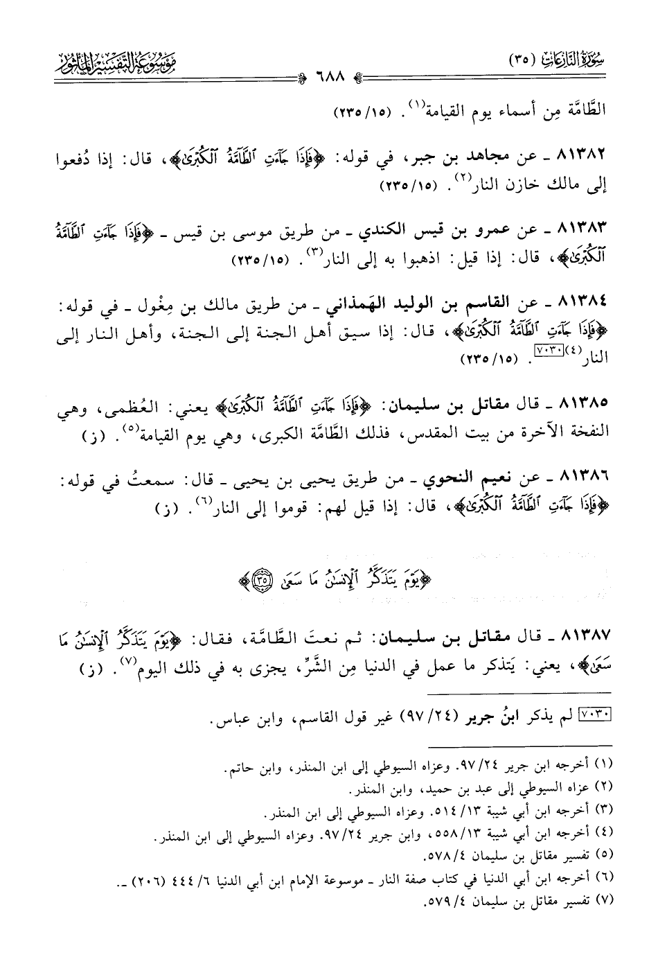 ٨١٣٨٣ - عن عمرو بن قيس الكندي -من طريق موسى بن قيس- {فَإذا جاءَتِ الطّامَّةُ الكُبْرى}، قال: إذا قيل: اذهبوا به إلى النار (¬٣). (١٥/ ٢٣٥)
