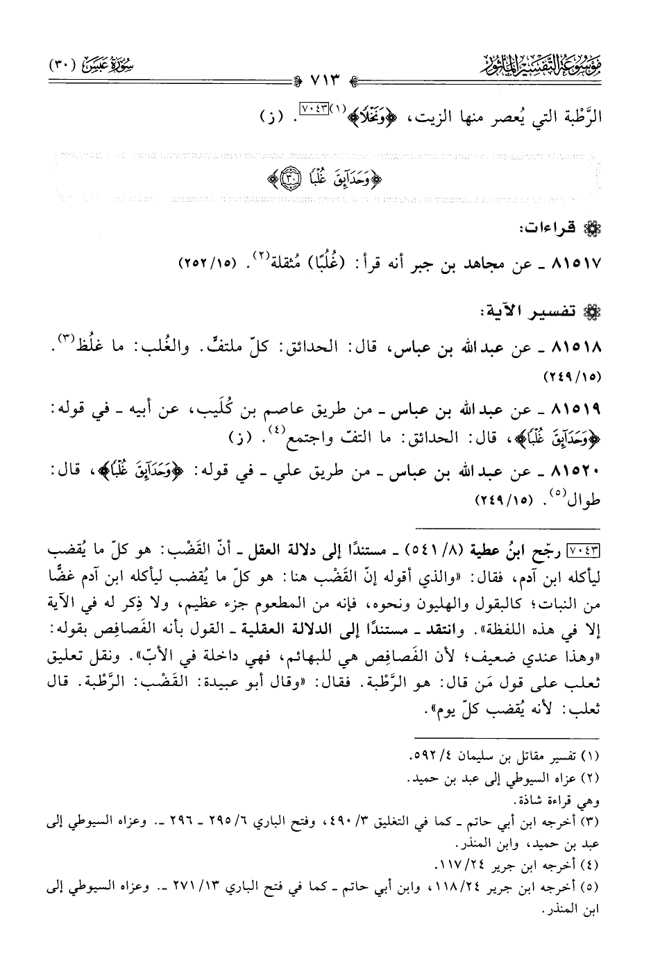 ٨١٥١٨ - عن عبد الله بن عباس، قال: الحدائق: كلّ ملتفٍّ. والغُلب: ما غلُظ (¬٣). (١٥/ ٢٤٩)
