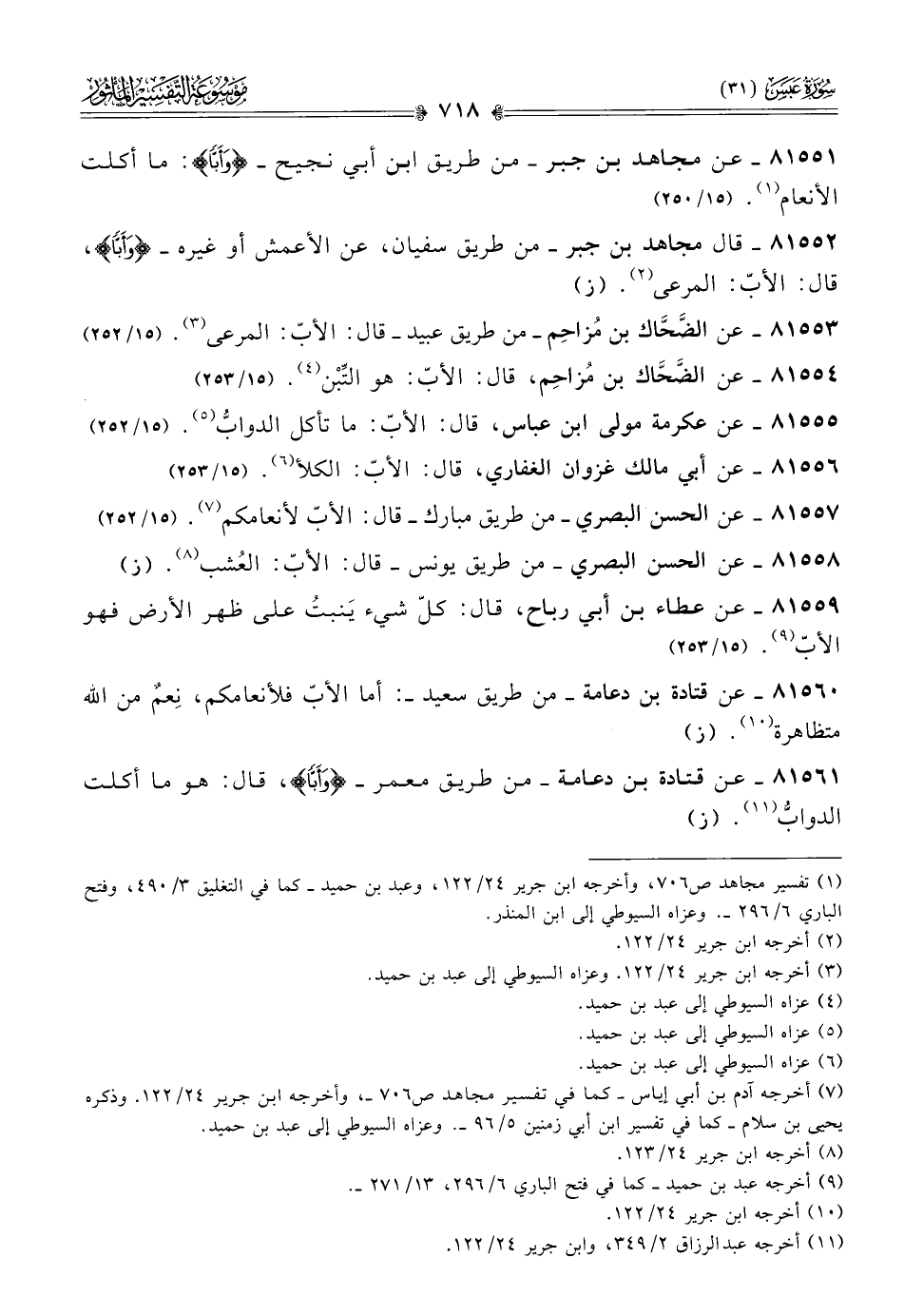 ٨١٥٥٤ - عن الضَّحّاك بن مُزاحِم، قال: الأبّ: هو التِّبْن (¬٤). (١٥/ ٢٥٣)