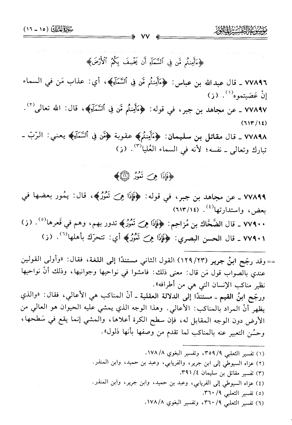 ٧٧٨٩٩ - عن مجاهد بن جبر، في قوله: {فَإذا هِيَ تَمُورُ}، قال: يمُور بعضها في بعض، واستدارتها (¬٤). (١٤/ ٦١٣)