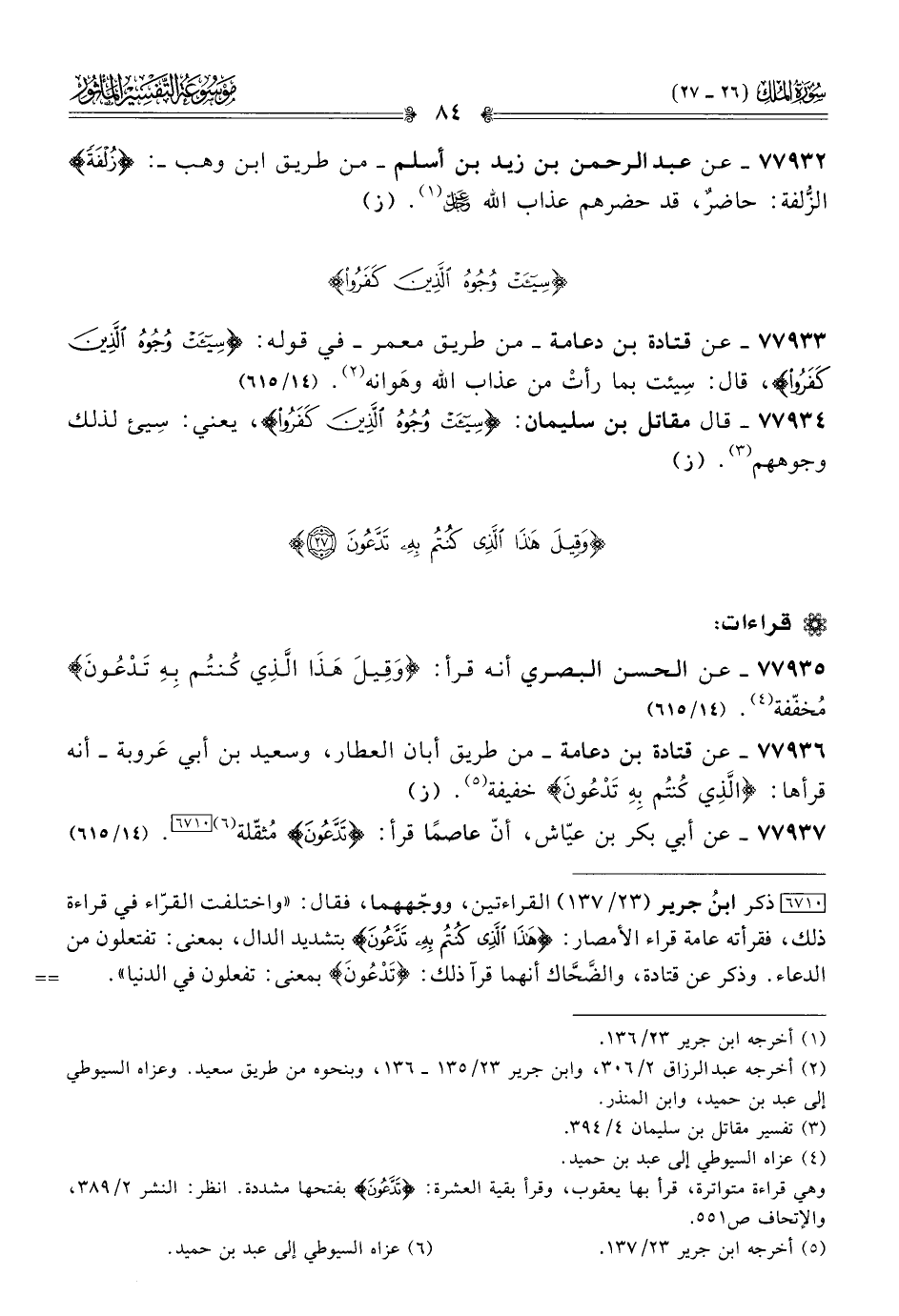 ٧٧٩٣٦ - عن قتادة بن دعامة -من طريق أبان العطار، وسعيد بن أبي عَروبة- أنه قرأها: «الَّذِي كُنتُم بِهِ تَدْعُونَ» خفيفة (¬٥). (ز)