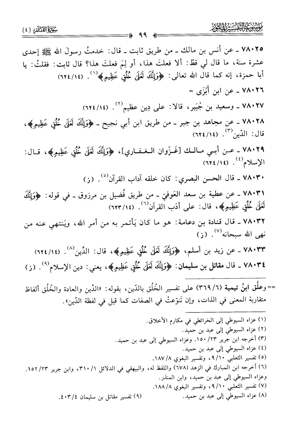 ٧٨٠٣٣ - عن زيد بن أسلم، {وإنَّكَ لَعَلى خُلُقٍ عَظِيمٍ}، قال: الدِّين (¬٨). (١٤/ ٦٢٤)