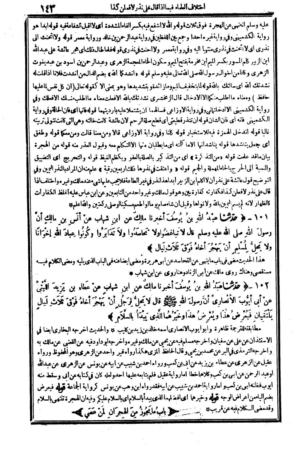 6077 - حدَّثنا عَبْدُ الله بنُ يوسُفَ أخبرنَا مالِكٌ عَنِ ابنِ شهابٍ عَنْ عَطاء بنِ يَزِيدَ اللَّيْثِيِّ عَنْ أبي أيُّوبَ الأنْصارِيِّ أنَّ رسولَ الله صلى الله عَلَيْهِ وَسلم قَالَ: لَا يَحِلُّ لِرَجُلٍ أنْ يَهْجُرَ أخاهُ فَوْقَ ثَلاَثِ لَيالٍ يَلْتَقيانِ فَيُعْرِضُ هاذَا وَيُعْرِضُ هاذَا وَخَيْرُهُما الَّذِي يَبْدَأ بالسَّلاَمِ. (انْظُر الحَدِيث 6077 طرفه فِي: 6237) .