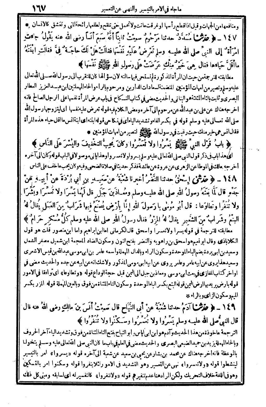 6125 - حدَّثنا آدَمُ حَدثنَا شُعْبَةُ عَنْ أبي التَّيَّاح قَالَ: سَمِعْتُ أنَسَ بنَ مالِكٍ رَضِي الله عَنهُ، قَالَ: قَالَ النبيُّ صلى الله عَلَيْهِ وَسلم: يَسِّرُوا وَلَا تُعَسِّرُوا وسَكِّنُوا وَلَا تُنَفِّرُوا. (انْظُر الحَدِيث 69 وطرفه) .