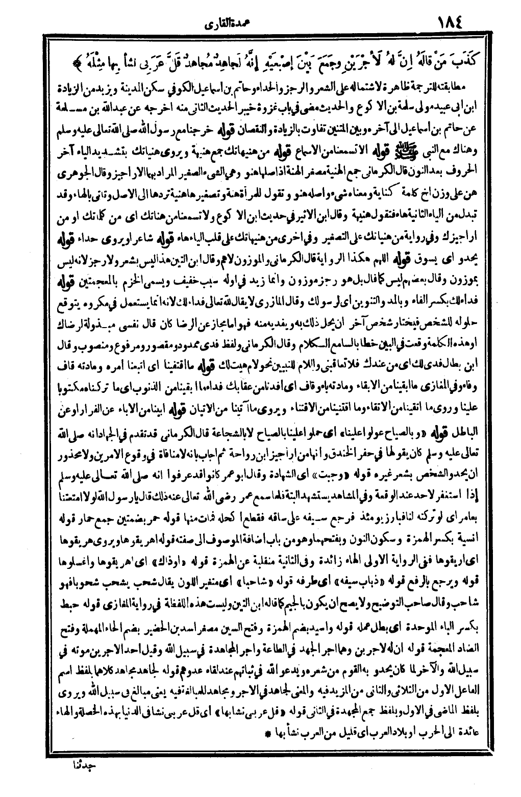 قَوْله: (خرجنَا مَعَ رَسُول الله صلى الله عَلَيْهِ وَسلم) وَهُنَاكَ: مَعَ النَّبِي صلى الله عَلَيْهِ وَسلم. قَوْله: (أَلاَ تسمعنا؟) من الإسماع. قَوْله: (من هنيهاتك) جمع هنيهة، ويروى: هنياتك، بتَشْديد الْيَاء آخر الْحُرُوف بعد النُّون. قَالَ الْكرْمَانِي: جمع الهنية مصغر الهنة إِذا صلها: هنو، وَهِي الشَّيْء الصَّغِير المُرَاد بهما الأراجيز. وَقَالَ الْجَوْهَرِي: هن على وزن: أَخ، كلمة كِنَايَة وَمَعْنَاهُ: شَيْء، وَأَصله هنو. وَتقول للْمَرْأَة: هنة، وتصغيرها. هنيَّة، تردها إِلَى الأَصْل وَتَأْتِي بِالْهَاءِ، وَقد تبدل من الْيَاء الثَّانِيَة هَاء، فَنَقُول: هنيهة، وَقَالَ ابْن الْأَثِير فِي حَدِيث ابْن الْأَكْوَع وَلَا تسمعنا من هناتك، أَي: من كلماتك أَو من أراجيزك، وَفِي رِوَايَة: من هنياتك على التصغير، وَفِي أُخْرَى: من هنيهاتك، على قلب الْيَاء هَاء. قَوْله: (شَاعِرًا) ويروى: حداء. قَوْله: (يَحْدُو) أَي: يَسُوق. قَوْله: (اللَّهُمَّ) هَكَذَا الرِّوَايَة، قَالَ الْكرْمَانِي: وَالْمَوْزُون: لَا هم، وَقَالَ ابْن التِّين: هَذَا لَيْسَ بِشعر وَلَا رجز لِأَنَّهُ لَيْسَ بموزون، وَقَالَ بَعضهم: لَيْسَ كَمَا قَالَ بل هُوَ رجز مَوْزُون، وَإِنَّمَا زيد فِي أَوله سَبَب خَفِيف وَيُسمى الخزم بالمعجمتين. قَوْله: (فدَاء لَك) بِكَسْر الْفَاء وبالمد والتنوين أَي: لِرَسُولِك، وَقَالَ الْمَازرِيّ: لَا يُقَال لله تَعَالَى: فدَاء لَك، لِأَنَّهُ إِنَّمَا يسْتَعْمل فِي مَكْرُوه يتَوَقَّع حُلُوله للشَّخْص فيختار شخص آخر أَن يحل ذَلِك بِهِ ويفديه مِنْهُ، فَهُوَ إِمَّا مجَاز عَن الرِّضَا كَأَن قَالَ: نَفسِي مبذولة لرضاك، أَو هَذِه الْكَلِمَة وَقعت فِي الْبَين خطابا لسامع الْكَلَام، وَقَالَ الْكرْمَانِي: وَلَفظ: فدى، مَمْدُود ومقصور ومرفوع ومنصوب، وَقَالَ ابْن بطال: فدى لَك، أَي: من عنْدك فَلَا تعاقبني، وَاللَّام للتبيين نَحْو لَام: هيت لَك. قَوْله: (مَا اقتفينا) أَي: اتَّبعنَا أمره ومادته قَاف وَفَاء، وَفِي الْمَغَازِي: مَا أبقينا من الْإِبْقَاء ومادته بَاء وقاف أَي: أفدنا من عقابك فدَاء مَا أبقينا من الذُّنُوب، أَي: مَا تَرَكْنَاهُ مَكْتُوبًا علينا، وروى: مَا اتقينا، من الاتقاء، وَمَا اقتنينا من الاقتناء، ويروى: مَا آتَيْنَا من الْإِتْيَان. قَوْله: (أَبينَا) من الإباء عَن الْفِرَار أَو عَن الْبَاطِل. قَوْله: (وبالصياح عولوا علينا) ، أَي: حملُوا علينا بالصياح لَا بالشجاعة، قَالَ الْكرْمَانِي: قد تقدم فِي الْجِهَاد أَنه صلى الله عَلَيْهِ وَسلم، كَانَ يَقُولهَا فِي حفر الخَنْدَق، وَأَنَّهَا من أراجيز ابْن رَوَاحَة، ثمَّ أجَاب بِأَنَّهُ لَا مُنَافَاة فِي وُقُوع الْأَمريْنِ وَلَا مَحْذُور أَن يَحْدُو الشَّخْص بِشعر غَيره. قَوْله: (وَجَبت) ، أَي: الشَّهَادَة وَقَالَ أَبُو عمر: كَانُوا قد عرفُوا أَنه صلى الله عَلَيْهِ وَسلم إِذا اسْتغْفر لأحد عِنْد الْوَقْعَة وَفِي الْمشَاهد يستشهد الْبَتَّةَ، فَلَمَّا سمع عمر رَضِي الله عَنهُ ذَلِك قَالَ: يَا رَسُول الله لَوْلَا أمتعتنا بعامر أَي: لَو تركته لنا فبارز يومئذٍ فَرجع سَيْفه على سَاقه فَقطع كحله فَمَاتَ مِنْهَا. قَوْله: (جمر) بِضَمَّتَيْنِ جمع حمَار. قَوْله: (إنسية) بِكَسْر الْهمزَة وَسُكُون النُّون وبفتحهما وَهُوَ من بَاب إِضَافَة الْمَوْصُوف إِلَى صفته. قَوْله: (أهريقوها) ويروى: هريقوها، أَي: أريقوها، فَفِي الرِّوَايَة الأولى الْهَاء زَائِدَة، وَفِي الثَّانِيَة منقلبة عَن الْهمزَة. قَوْله: (أَو ذَاك) أَي: أهريقوها واغسلوها. قَوْله: (وَيرجع) بِالرَّفْع. قَوْله: (ذُبَاب سَيْفه) أَي: طرفه. قَوْله: (شاحباً) أَي: متغير اللَّوْن، يُقَال شحب يشحب سحوباً فَهُوَ شاحب، وَقَالَ صَاحب التَّوْضِيح: وَلَا يَصح أَن يكون بِالْجِيم كَمَا قَالَه ابْن التِّين، وَلَيْسَت هَذِه اللَّفْظَة فِي رِوَايَة الْمَغَازِي. قَوْله: (حَبط) بِكَسْر الْبَا