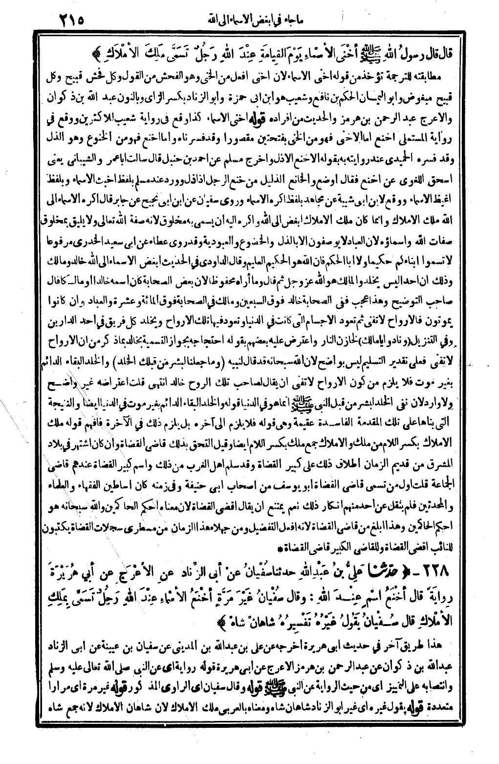 النبيُّ صلى الله عَلَيْهِ وَسلم، ثُمَّ قَالَ: آمَنْتُ بِاللَّه ورُسُلِهِ، ثُمَّ لابْنِ صَيَّادٍ: ماذَا تَرَى؟ قَالَ: يَأْتِينِي صادِقُ وكاذِبٌ، قَالَ رسولُ الله صلى الله عَلَيْهِ وَسلم: خُلِّطَ عَلَيْكَ الأمْرُ، قَالَ رسولُ الله صلى الله عَلَيْهِ وَسلم: إنِّي خَبَّأْتُ لَكَ خَبِيئاً. قَالَ: هُوَ الدُّخُّ. قَالَ: إخْسَأْ فَلَنْ تَعْدُو قَدْرَكَ. قَالَ عُمَرُ: يَا رسُولَ الله {أتَأْذنُ لي فِيهِ أضْرِبْ عُنُقَهُ؟ قَالَ رسولُ الله صلى الله عَلَيْهِ وَسلم: إنْ يَكُنْ هُوَ لَا تُسَلَّطُ عَلَيْهِ، وَإِن لَمْ يَكُنْ هُوَ فَلا خَيْرَ لَكَ فِي قَتْلِهِ. قَالَ سالِمٌ: فَسَمِعْتُ عَبْدَ الله بنَ عُمَرٍ يَقُولُ: انْطَلَقَ بَعْدَ ذالِكَ رسولُ الله صلى الله عَلَيْهِ وَسلم وأُبَيُّ ابنُ كَعْبٍ الأنْصارِيُّ يَؤْمَّانِ النَّخْلَ الَّتي فِيها ابنُ صَيَّادٍ حَتَّى إِذا دَخَلَ رسولخ الله صلى الله عَلَيْهِ وَسلم، طَفِقَ رَسولُ الله صلى الله عَلَيْهِ وَسلم يَتَّقِي بِجُذُوعِ النَّخْلِ وَهْوَ يَخْتِلُ أنْ يَسْمَعَ مِن ابنِ صَيَّادٍ شَيْئاً قَبْلَ أنْ يَراهُ، وابنُ صَيَّادٍ مُضْجِعٌ عَلَى فِراشِهِ فِي قَطِيفَةٍ لَهُ فِيها رَمْرَمَةٌ أَوْ زَمْزَمَةٌ فَرَأتْ أمُّ ابنِ صَيَّاد النبيَّ صلى الله عَلَيْهِ وَسلم وَهْوَ يَتَّقِي بِجُذُوعِ النَّخْلِ، فقالَتْ لابْنِ صَيَّادٍ: أيْ صَاف وَهْوَ اسْمُهُ هاذَا مُحَمَّدٌ} فَتَناهَى ابنُ صَيَّادٍ، قَالَ رسولُ الله صلى الله عَلَيْهِ وَسلم: لَوْ تَرَكَتْهُ بَيَّنَ.