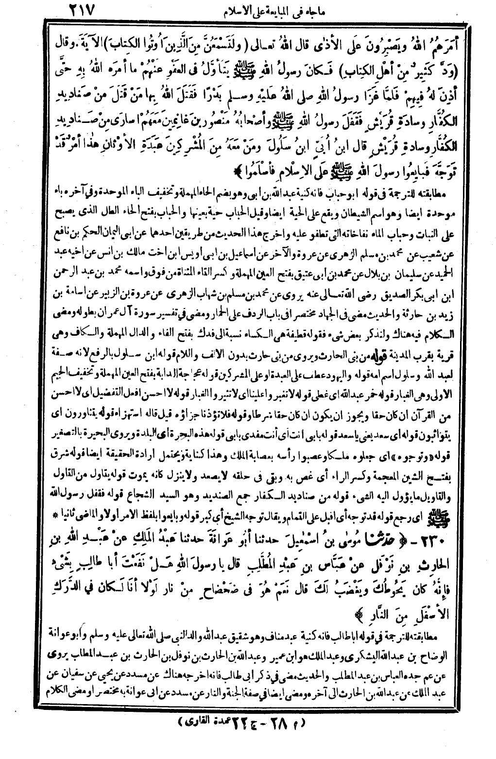 والْحَدِيث مضى فِي ذكر أبي طَالب فَإِنَّهُ أخرجه هُنَاكَ عَن مُسَدّد عَن يحيى عَن سُفْيَان عَن عبد الْملك عَن عبد الله بن الْحَارِث إِلَى آخِره، وَمضى أَيْضا فِي صفة الْجنَّة وَالنَّار عَن مُسَدّد عَن أبي عوَانَة بِهِ مُخْتَصرا، وَمضى الْكَلَام