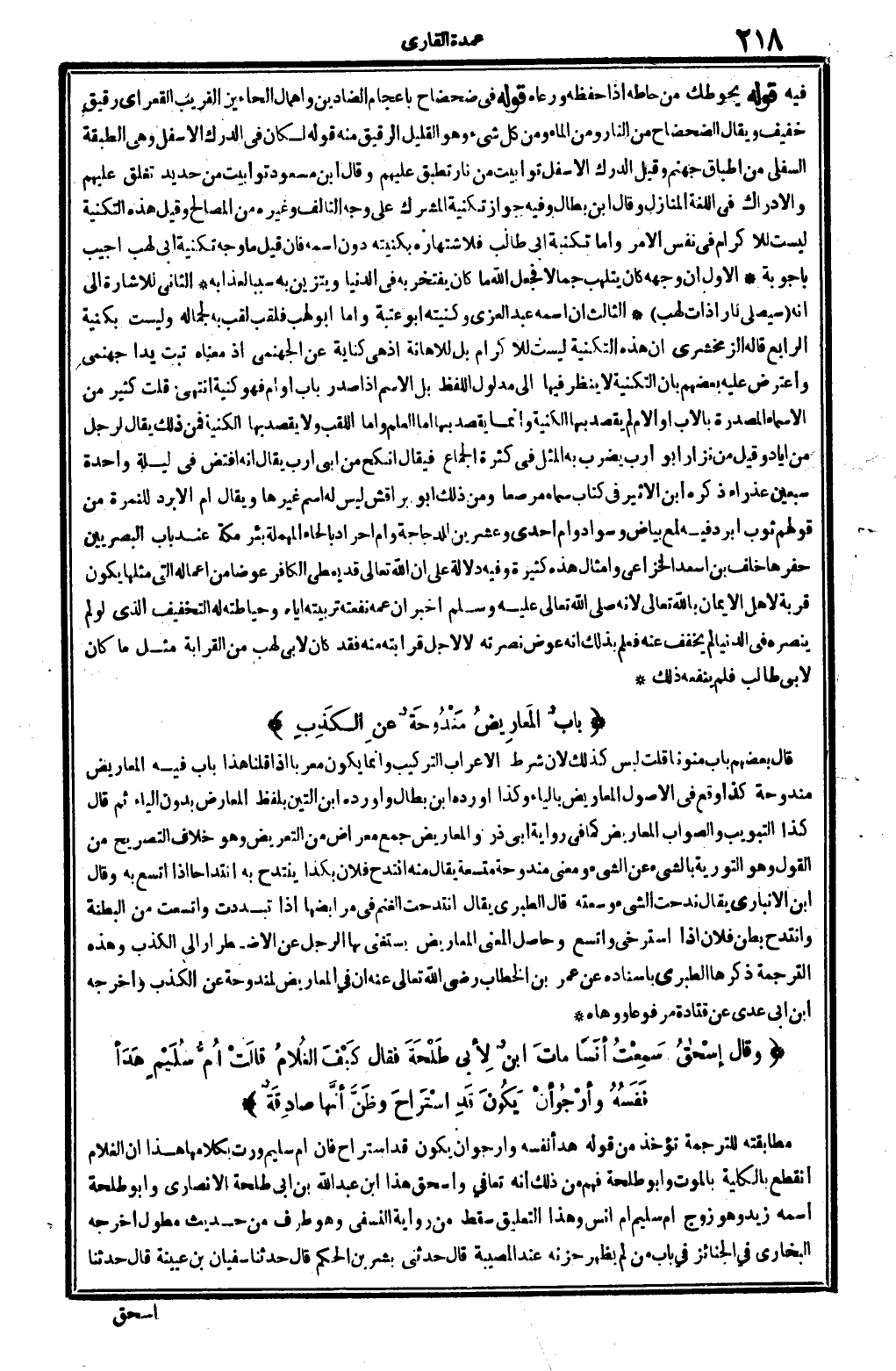 116 - (بابٌ المَعارِيضُ مَنْدُوحَةٌ عَنِ الكَذِبِ)
