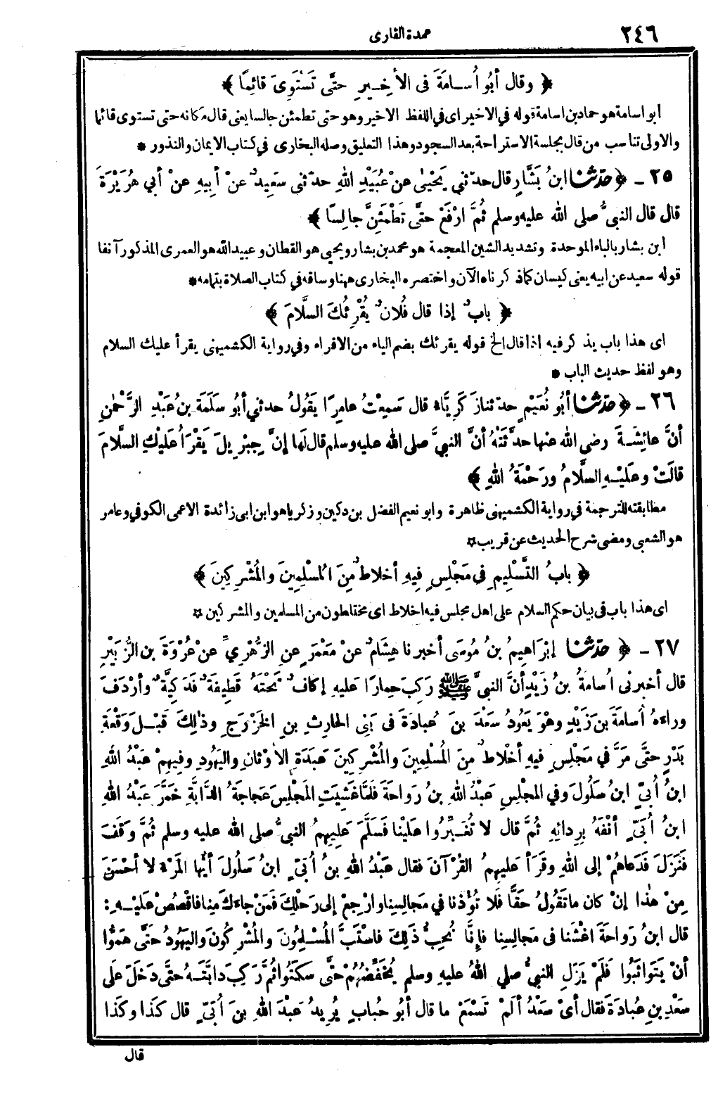 6252 - حدَّثنا ابنُ بَشَّارٍ قَالَ: حدّثني يَحْياى عَنْ عُبَيْدِ الله حدّثني سَعِيدٌ عَنْ أبِيهِ عَنْ أبي هُرَيْرَةَ قَالَ: قَالَ النبيُّ صلى الله عَلَيْهِ وَسلم: ثُمَّ ارْفَعْ حَتَّى تَطْمَئِنَّ جالِساً.