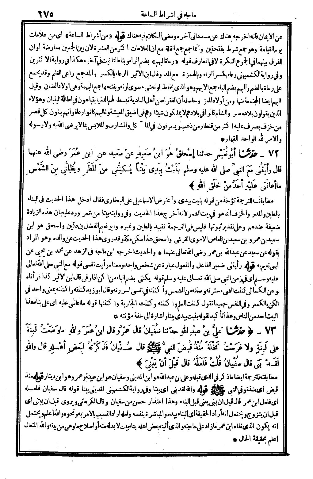 عَن الْإِيمَان، فَإِنَّهُ أخرجه هُنَاكَ عَن مُسَدّد ... إِلَى آخِره. وَمضى الْكَلَام فِيهِ هُنَاكَ. قَوْله: (من أَشْرَاط السَّاعَة) أَي: من عَلَامَات يَوْم الْقِيَامَة، وَهُوَ جمع شَرط بِفتْحَتَيْنِ وَإِنَّمَا جمع جمع الْقلَّة مَعَ أَن العلامات أَكثر من الْعشْرَة لِأَن بَين الجمعين مُعَارضَة، أَو أَن الْفرق بَينهمَا فِي الجموع النكرَة لَا فِي المعارف. قَوْله: (رُعَاة البهم) ، بِضَم الرَّاء وبتاء التَّأْنِيث فِي آخِره، هَكَذَا فِي رِوَايَة الْأَكْثَرين وَفِي رِوَايَة الْكشميهني: رعاء، بِكَسْر الرَّاء وبالهمزة مَعَ الْمَدّ، وَقَالَ ابْن الْأَثِير: الرعاء بِالْكَسْرِ وَالْمدّ جمع راعي الْغنم، وَقد يجمع على رُعَاة بِالضَّمِّ، والبهم بِضَم الْبَاء جمع الأبهم وَهُوَ الَّذِي يخلط لَونه شَيْء سوى لَونه، وَبِفَتْحِهَا جمع البهمة وَهِي أَوْلَاد الضَّأْن، وَقيل: البهم أَيْضا المجتمعة مِنْهَا، وَمن أَوْلَاد الْمعز وَحَاصِله: أَن الْفُقَرَاء من أهل الْبَادِيَة تبسط لَهُم الدُّنْيَا يتباهون فِي إطالة الْبُنيان وَهَؤُلَاء الَّذين يَقُولُونَ: بِلَاد مصر وَالشَّام كَانُوا فِي بِلَادهمْ لَا يملكُونَ شَيْئا وهم فِي أضيق الْمَعيشَة وغالبهم كَانُوا رُعَاة وَأَنَّهُمْ يبنون كل قصر من خزف يصرف عَلَيْهِ أَكثر من قِنْطَار من ذهب ويسرفون فِي المآكل والمشارب والملابس بِمَا لَا يرضى الله بِهِ وَلَا رَسُوله وَالْأَمر لله الْوَاحِد القهار.