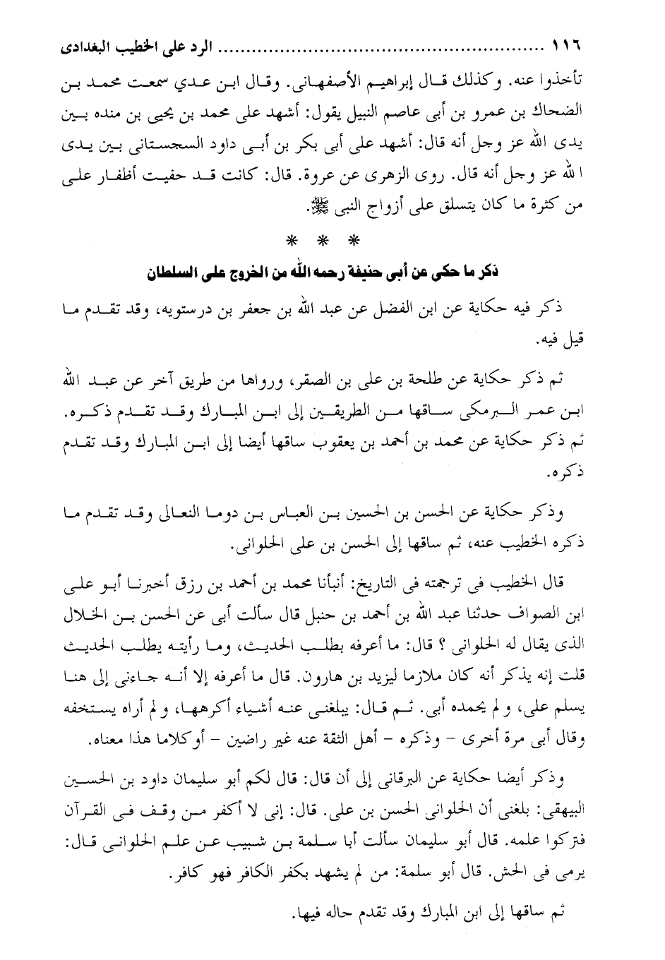 ذكر ما حكى عن أبى حنيفة رحمه الله من الخروج على السلطان