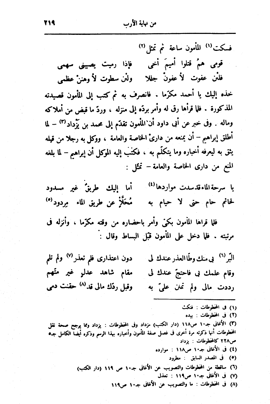 فسكت «1» المأمون ساعة ثم تمثل «2»