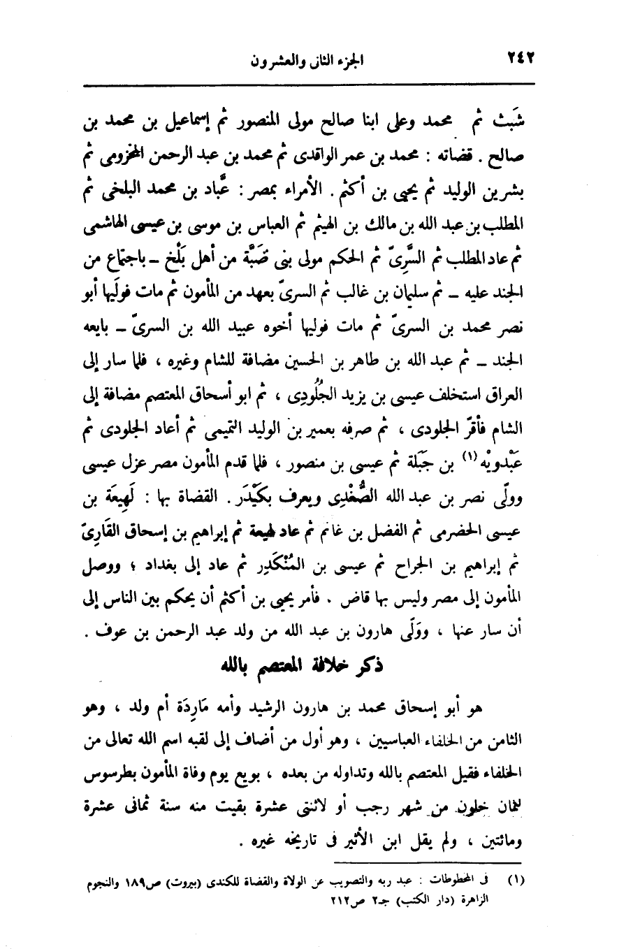 هو أبو إسحاق محمد بن هارون الرشيد وأمه ماردة أم ولد، وهو الثامن من الخلفاء العباسيين، وهو أول من أضاف إلى لقبه اسم الله تعالى من الخلفاء فقيل المعتصم بالله وتداوله من بعده، بويع يوم وفاة المأمون بطرسوس لثمان خلون من شهر رجب أو لاثنتى عشرة بقيت منه سنة ثمانى عشرة ومائتين، ولم يقل ابن الأثير فى تاريخه غيره.