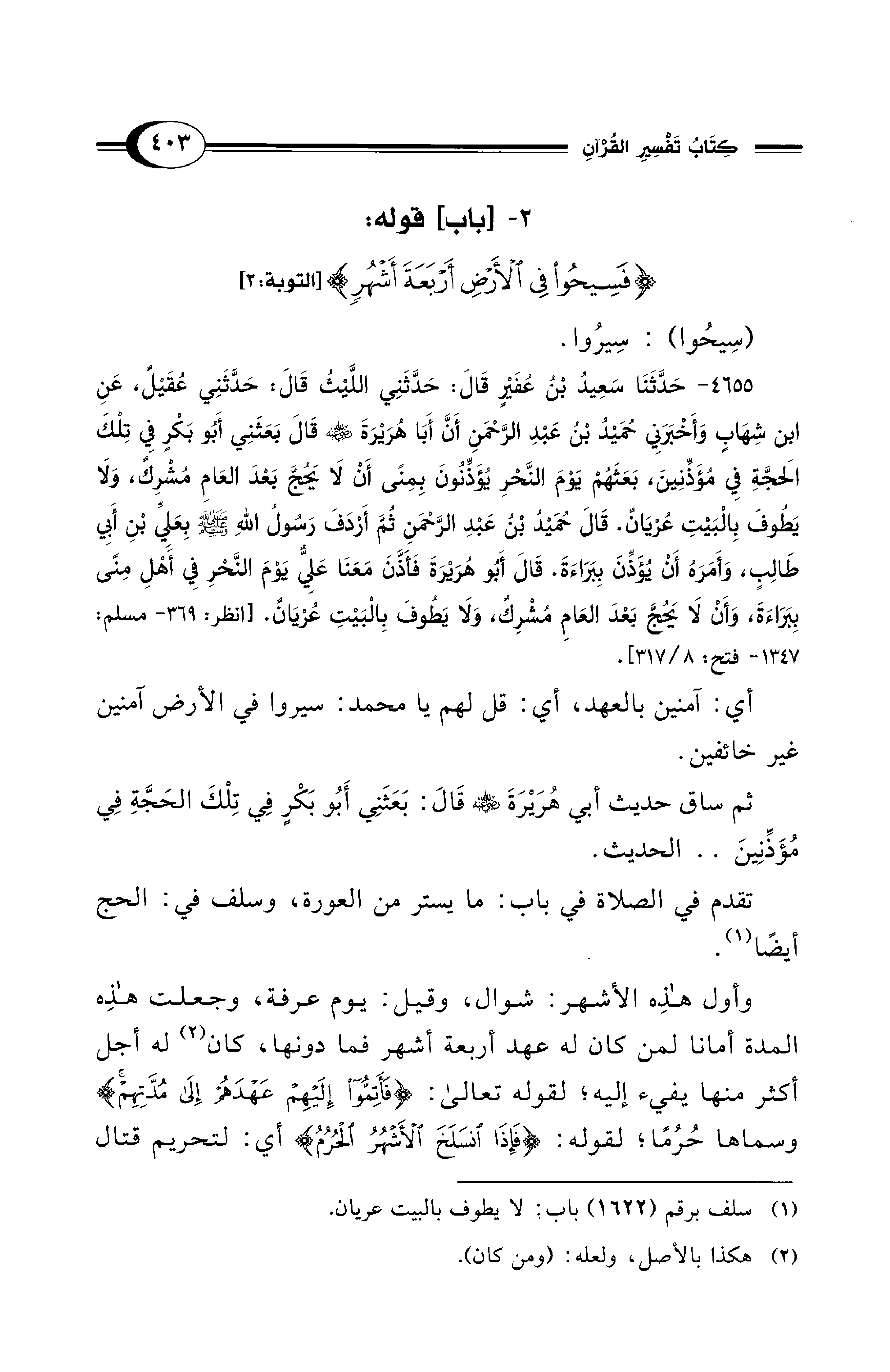 2 - [باب] قوله: {فَسِيحُوا فِي الْأَرْضِ أَرْبَعَةَ أَشْهُرٍ} [التوبة: 2]