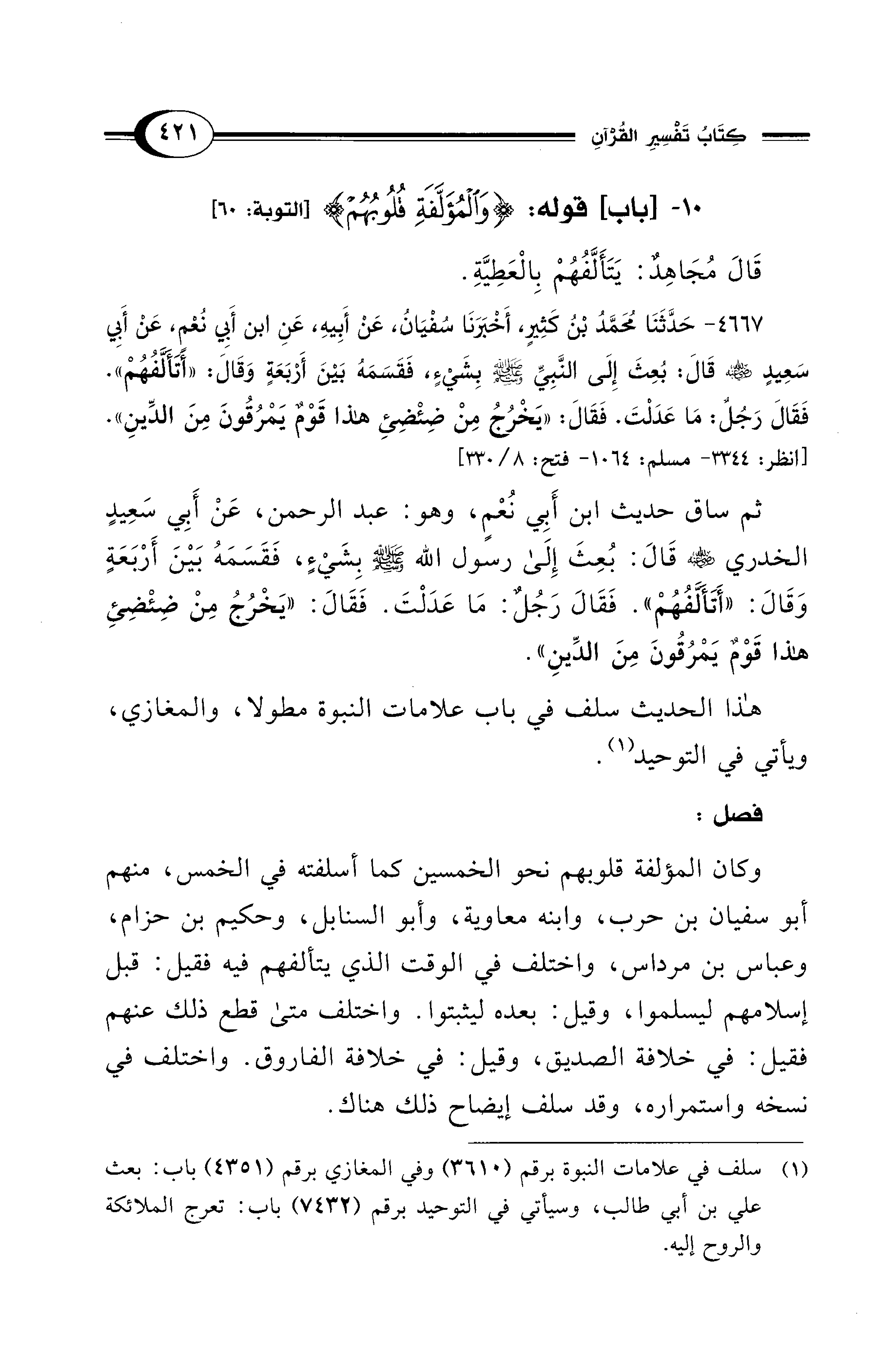 10 - [باب] قوله: {وَاَلْمُؤَلَّفَةِ قلُوبُهُمِ} [التوبة: 60]