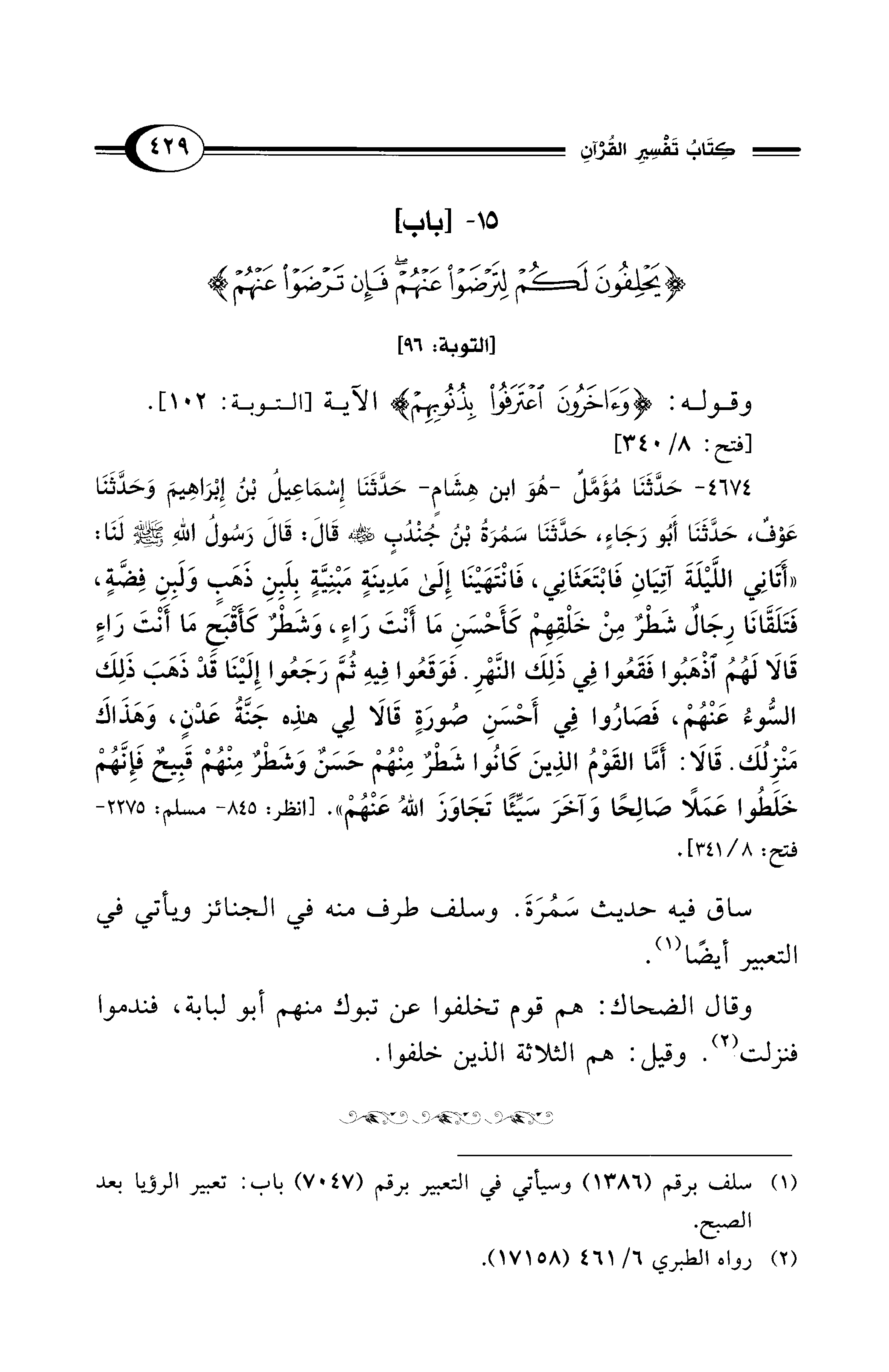 15 - [باب] {يَحْلِفُونَ لَكُمْ لِتَرْضَوْا عَنْهُمْ فَإِنْ تَرْضَوْا عَنْهُمْ} [التوبة: 96]