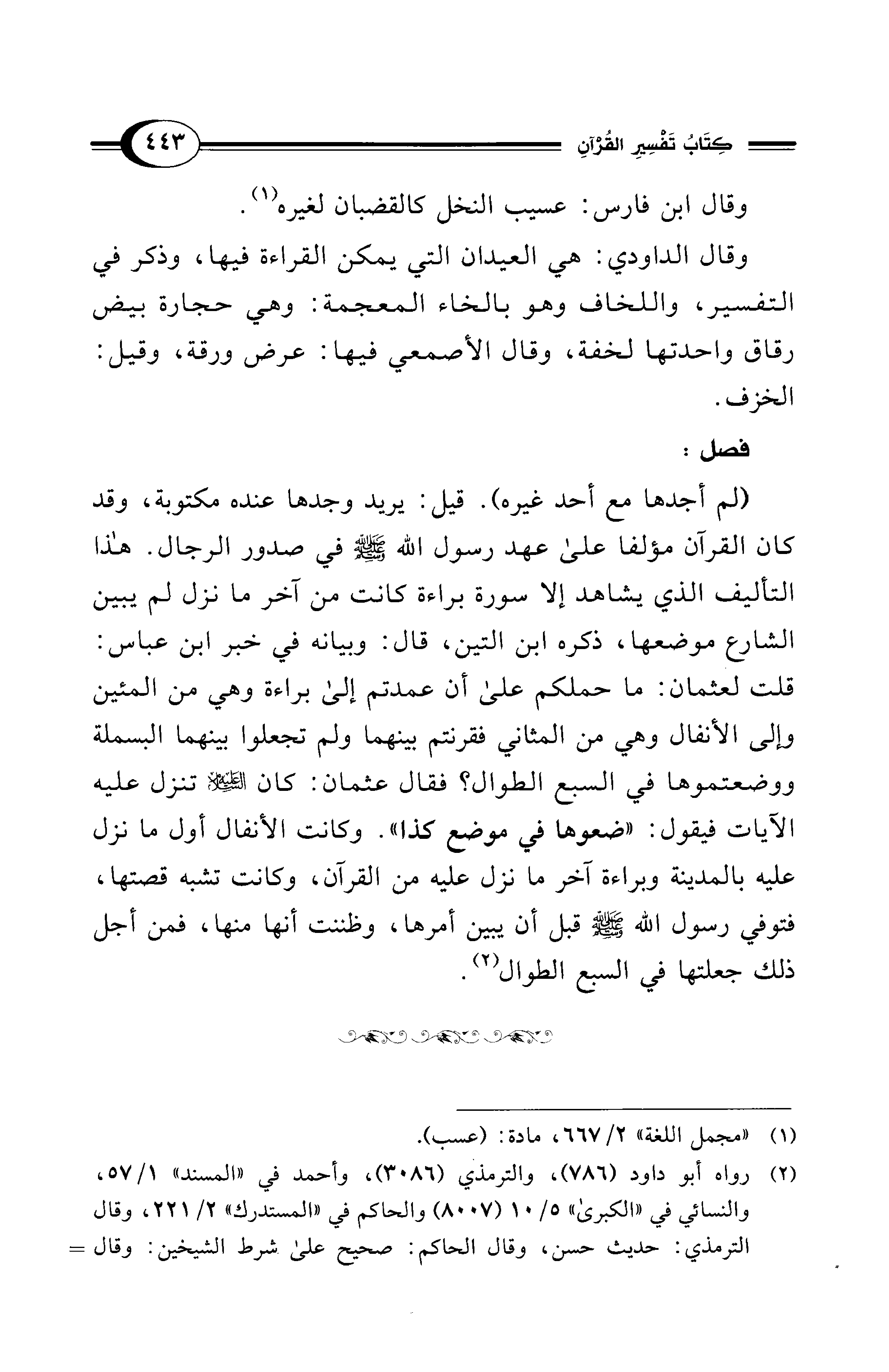(¬1) "مجمل اللغة" 2/ 667، مادة: (عسب).