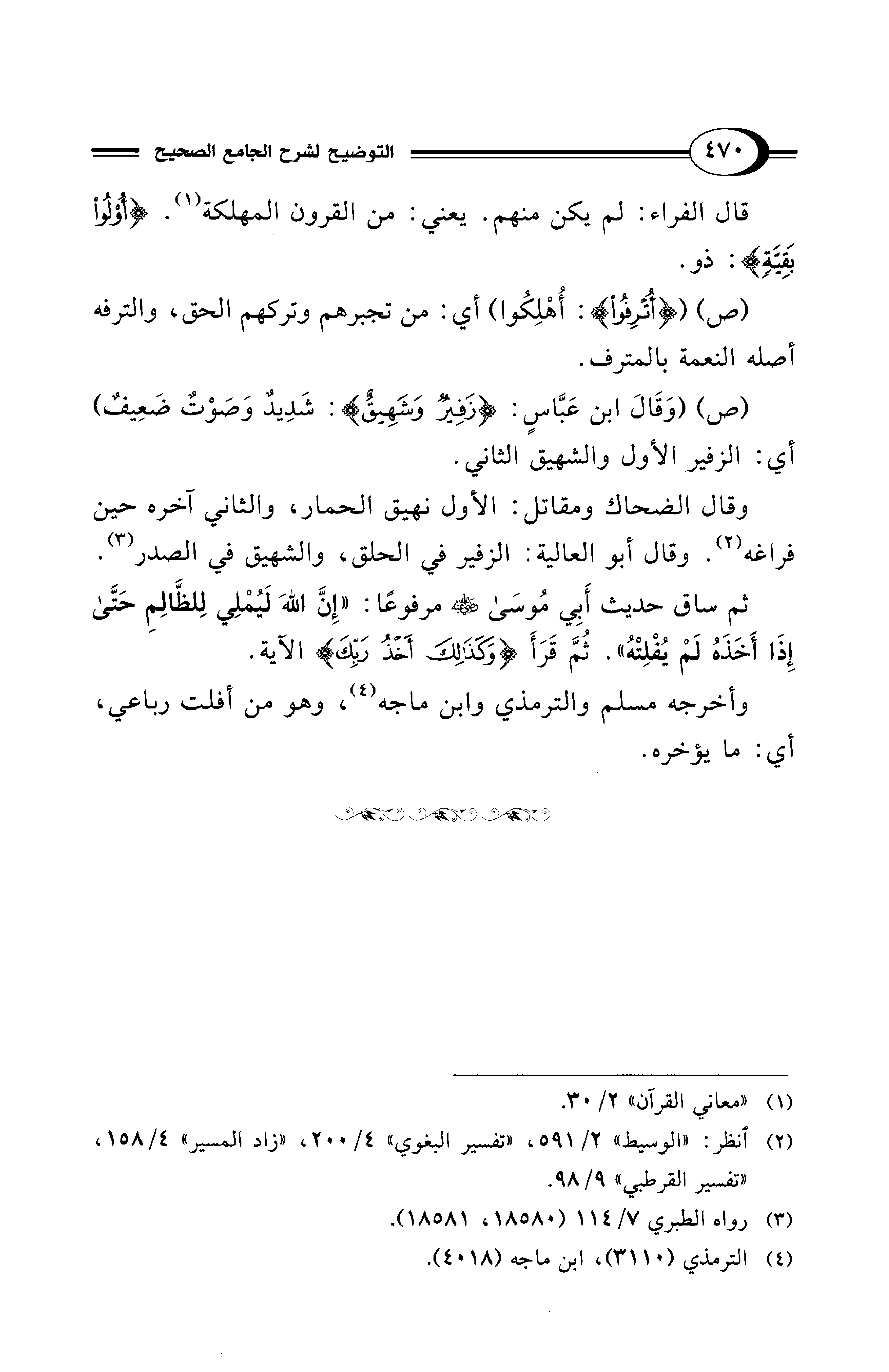 ثم ساق حديث أَبِي مُوسَى - رضي الله عنه - مرفوعًا: "إِنَّ اللهَ لَيُمْلِي لِلظَّالِمِ حَتَّى إِذَا أَخَذَهُ لَمْ يُفْلِتْهُ". ثُمَّ قَرَأَ {وَكَذَلِكَ أَخْذُ رَبِّكَ} الآية.