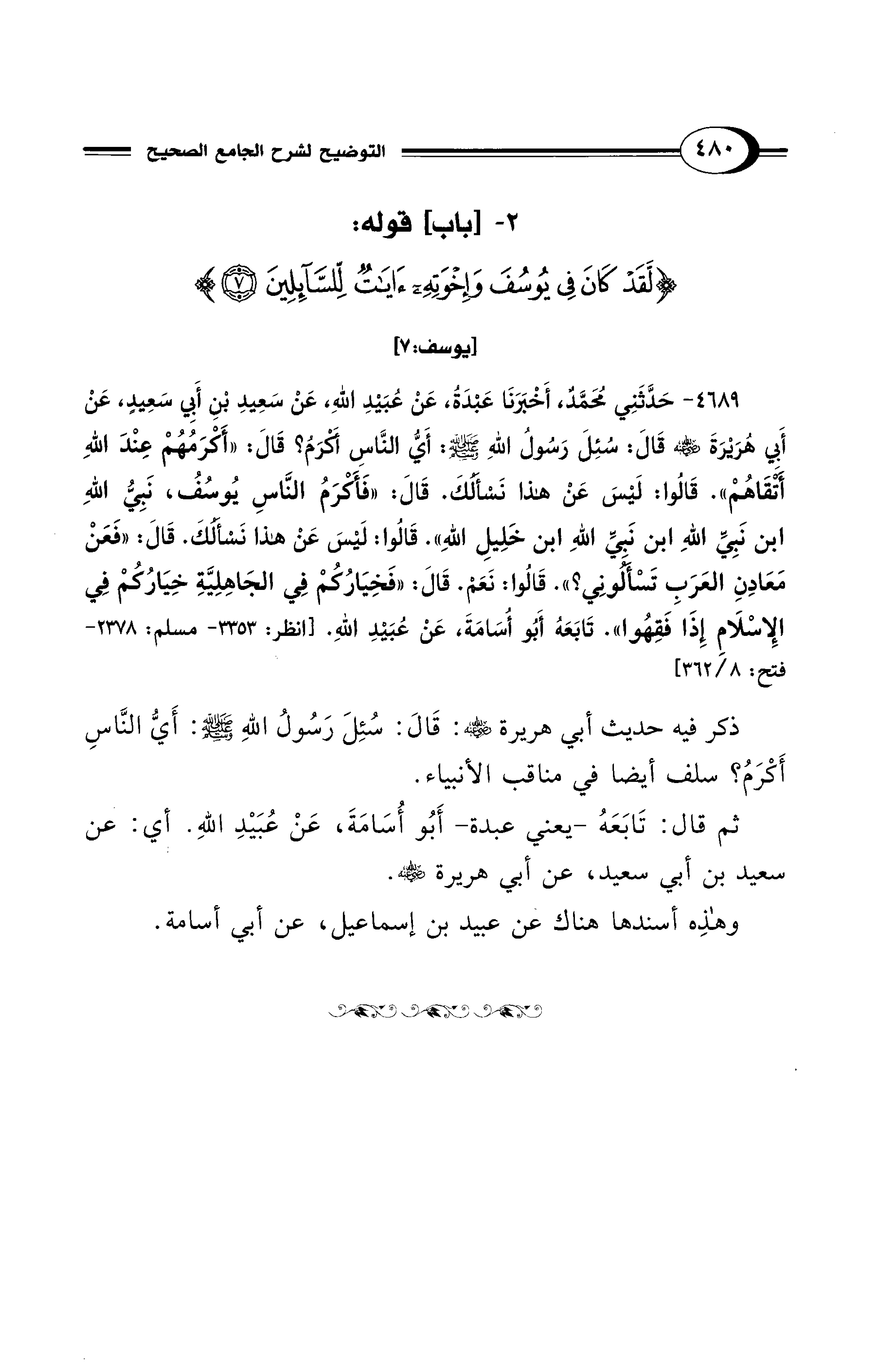 2 - [باب] قوله: {لَقَدْ كَانَ فِي يُوسُفَ وَإِخْوَتِهِ آيَاتٌ لِلسَّائِلِينَ (7)} [يوسف: 7]