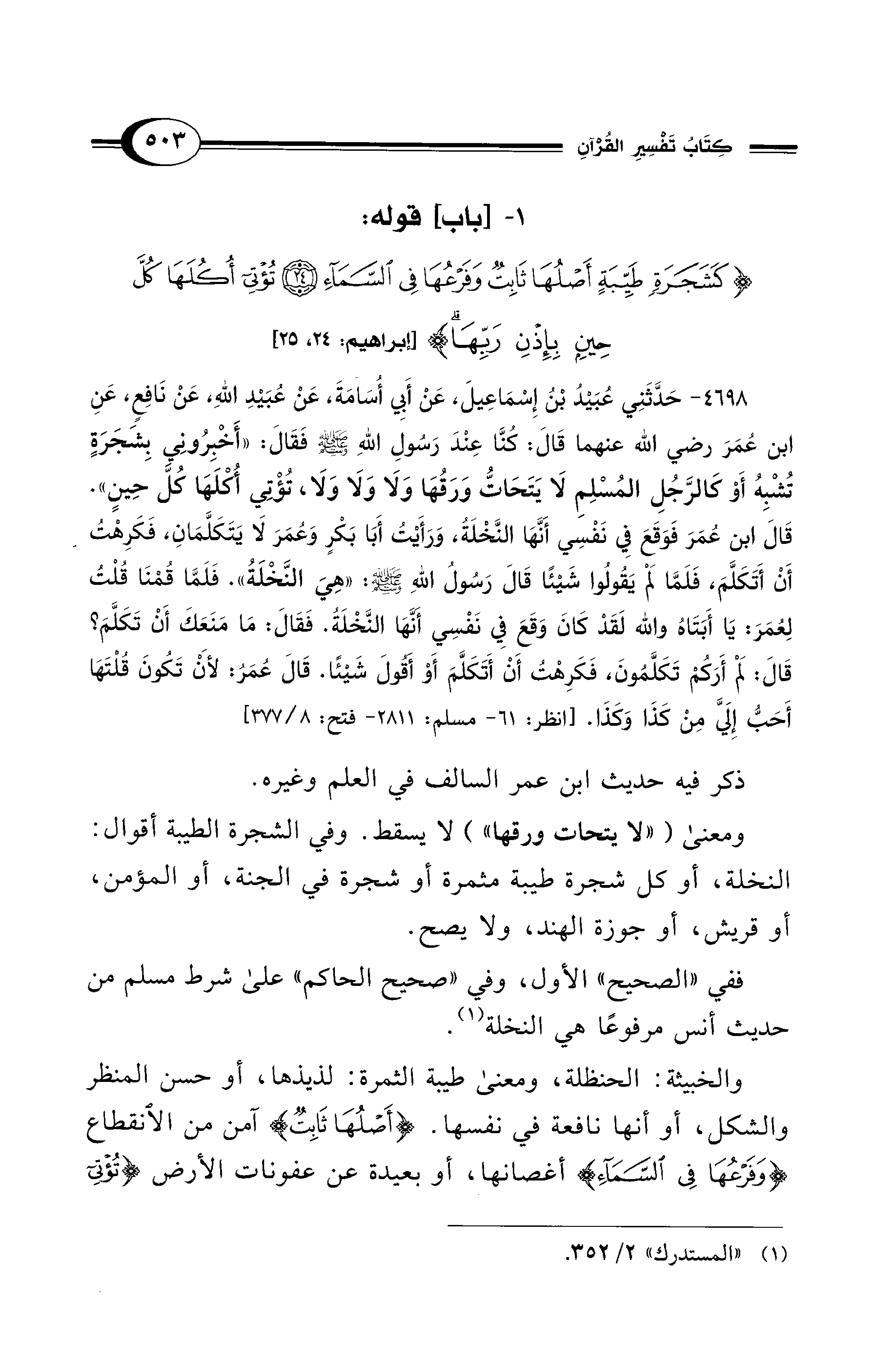 1 - [باب] قوله: {كَشَجَرَةٍ طَيِّبَةٍ أَصْلُهَا ثَابِتٌ وَفَرْعُهَا فِي السَّمَاءِ (24) تُؤْتِي أُكُلَهَا كُلَّ حِينٍ بِإِذْنِ رَبِّهَا} [إبراهيم: 24، 25]