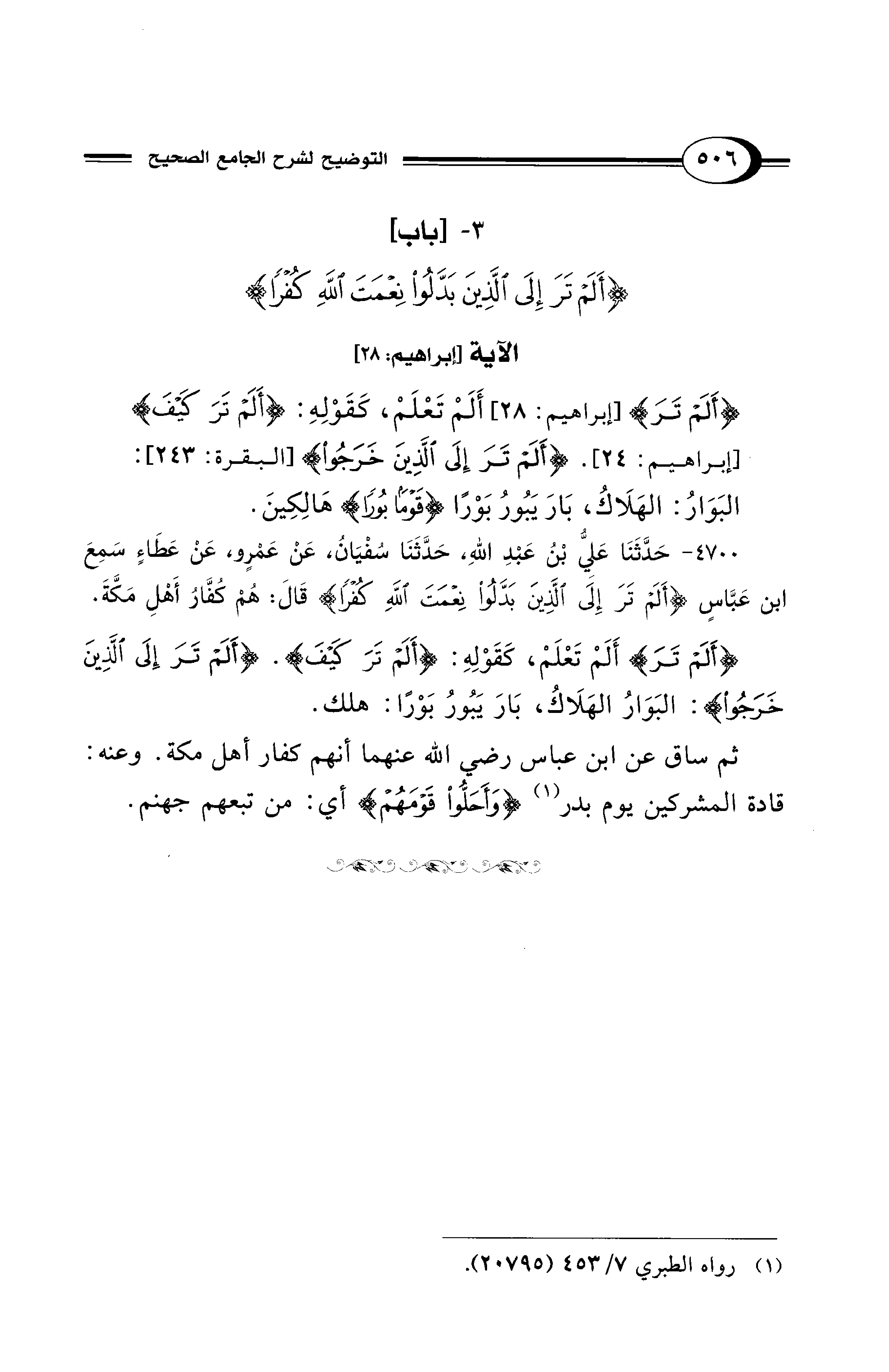 3 - [باب] {أَلَمْ تَرَ إِلَى الَّذِينَ بَدَّلُوا نِعْمَتَ اللهِ كُفْرًا} الآية [إبراهيم: 28]