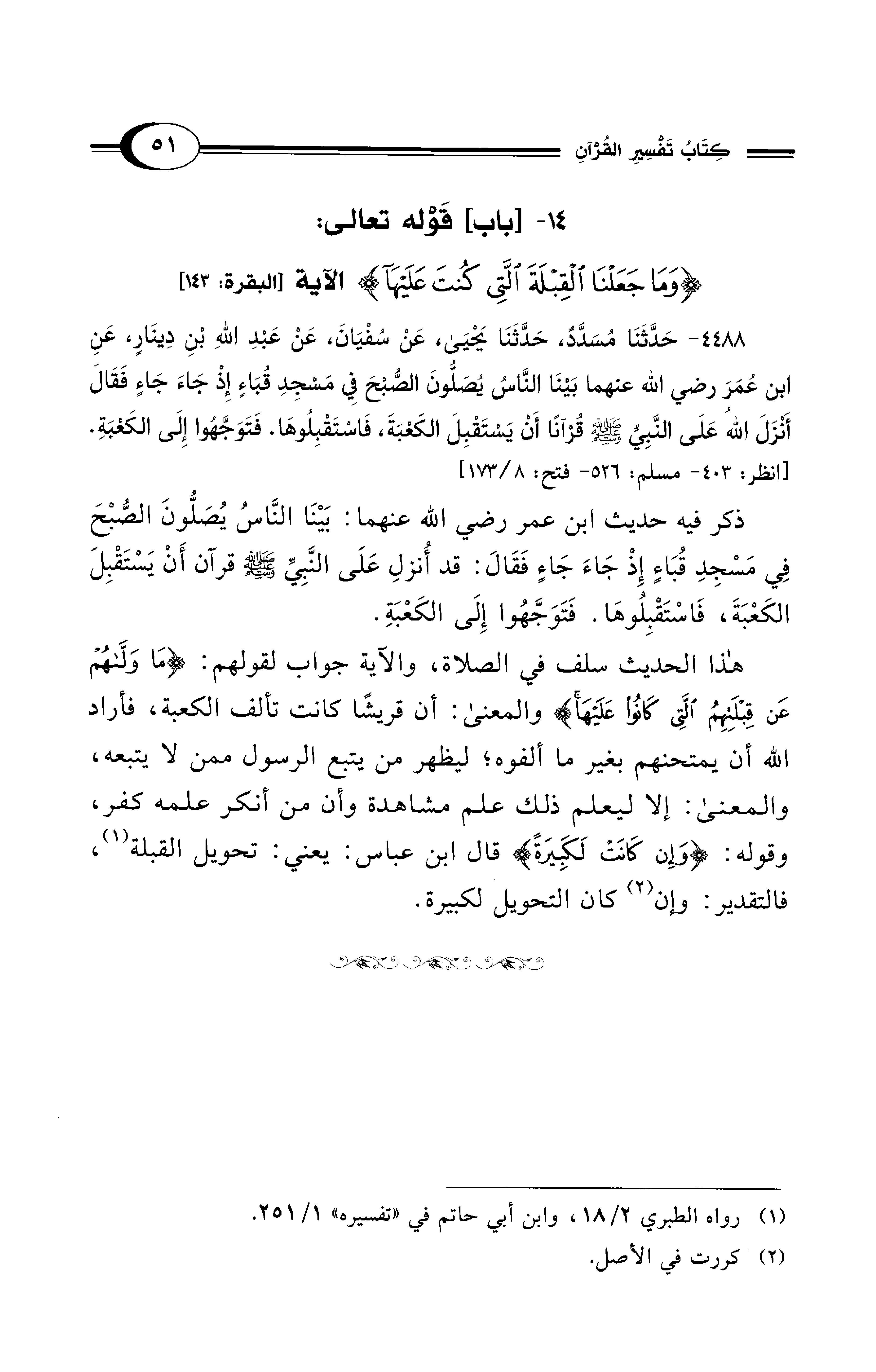 14 - [باب] قَوْله تعالى: {وَمَا جَعَلْنَا الْقِبْلَةَ الَّتِي كُنْتَ عَلَيْهَا} الآية [البقرة: 143]