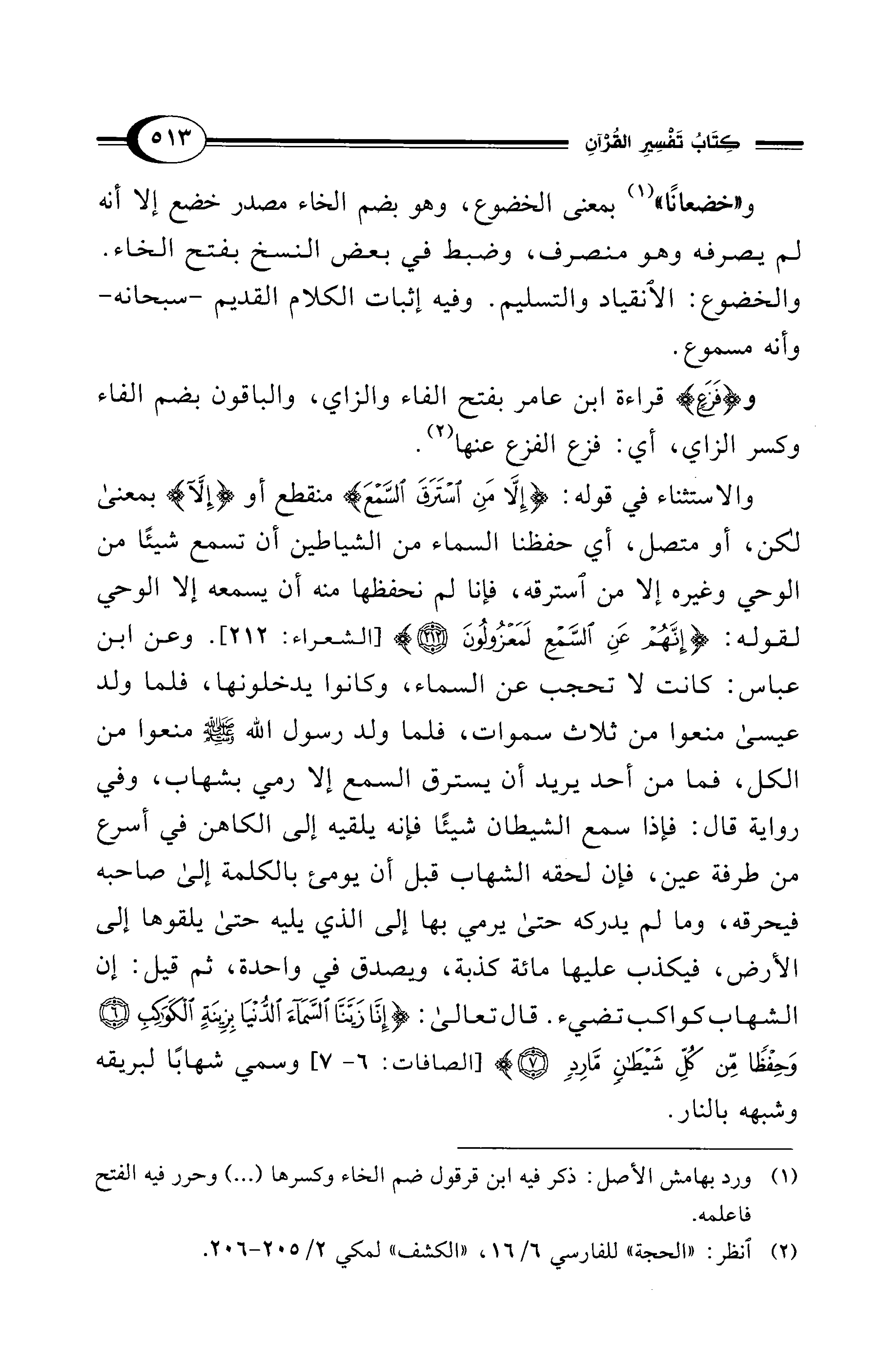 (¬2) انظر: "الحجة" للفارسي 6/ 16، "الكشف" لمكي 2/ 205 - 206.