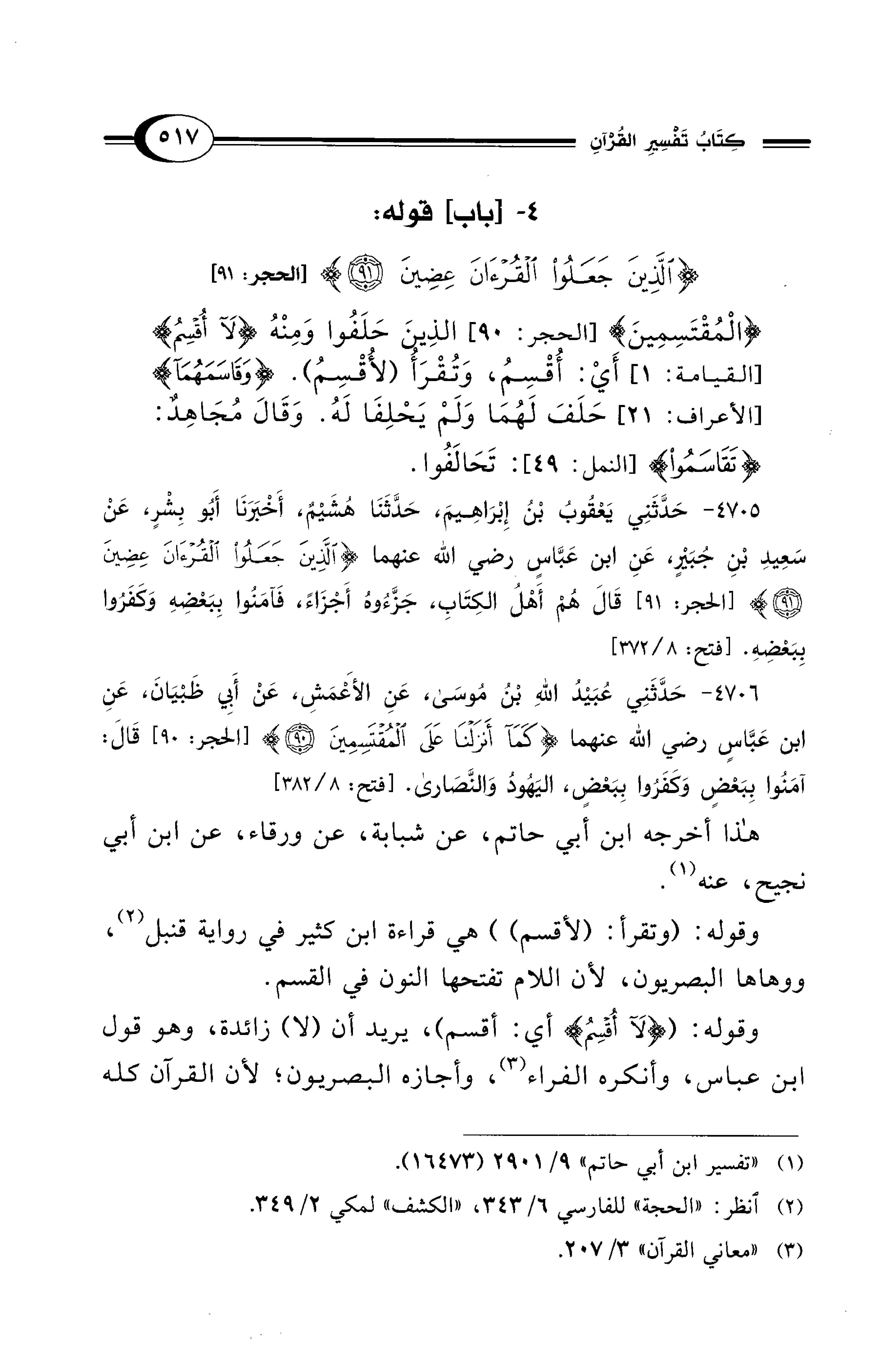 4 - [باب] قوله: {الَّذِينَ جَعَلُوا الْقُرْآنَ عِضِينَ (91)} [الحجر: 91]