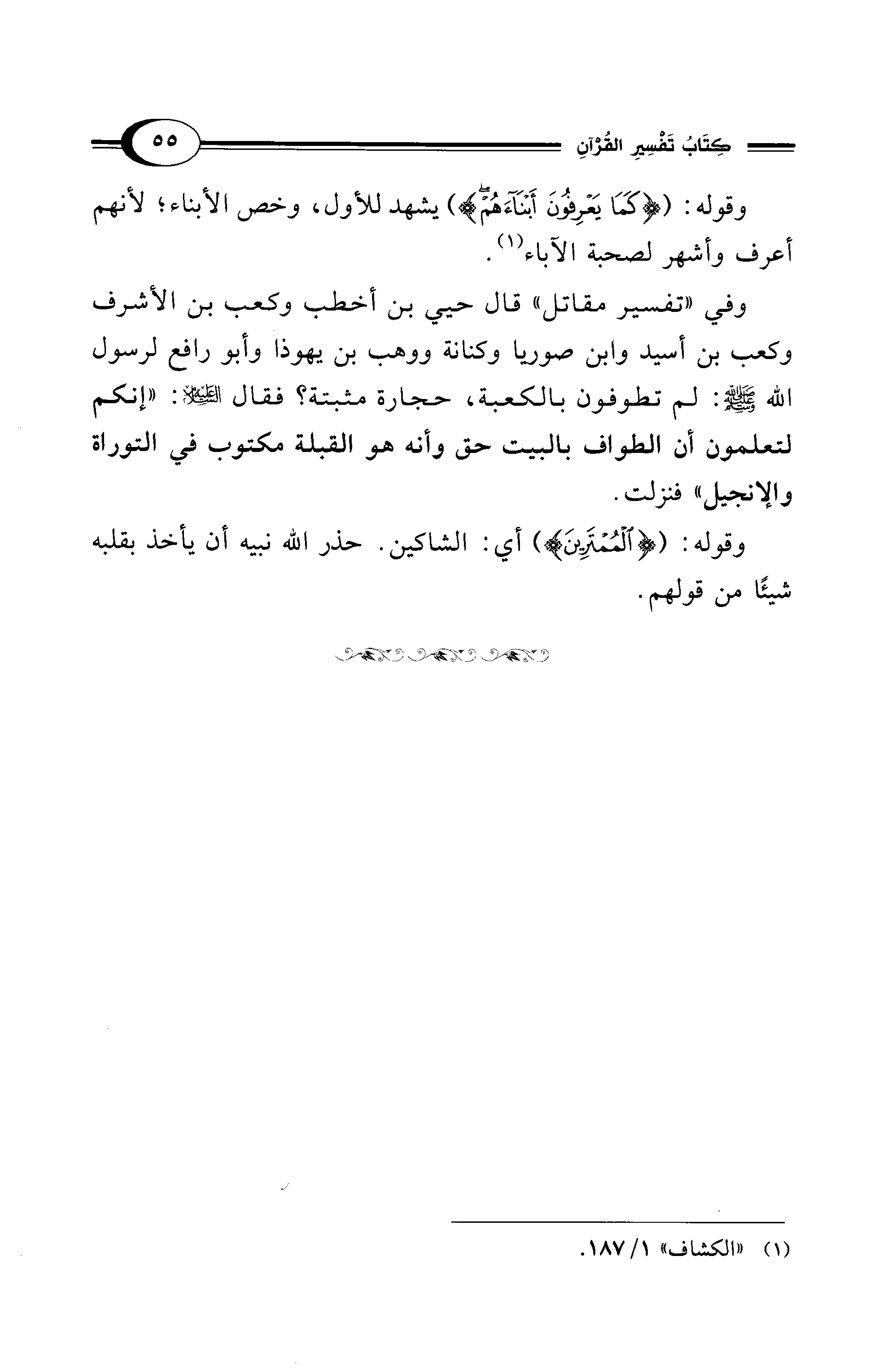 وفي "تفسير مقاتل" قال حيي بن أخطب وكعب بن الأشرف وكعب بن أسيد وابن صوريا وكنانة ووهب بن يهوذا وأبو رافع لرسول الله - صلى الله عليه وسلم -: لم تطوفون بالكعبة، حجارة مثبتة؟ فقال - عليه السلام -: "إنكم لتعلمون أن الطواف بالبيت حق وأنه هو القبلة مكتوب في التوراة والإنجيل" فنزلت.
