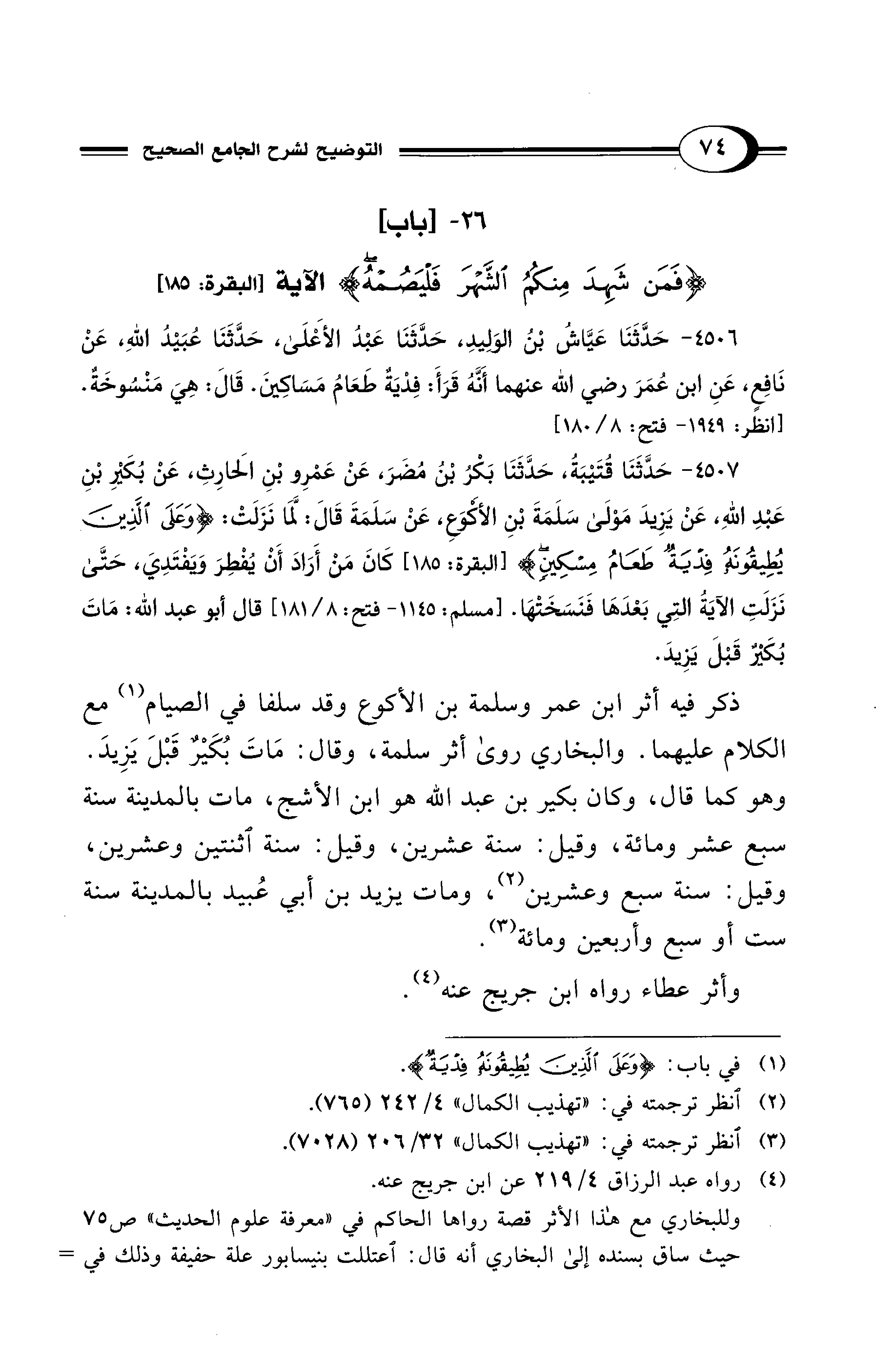 (¬1) في باب: {وَعَلَى الَّذِينَ يُطِيقُونَهُ فِدْيَةٌ}.
