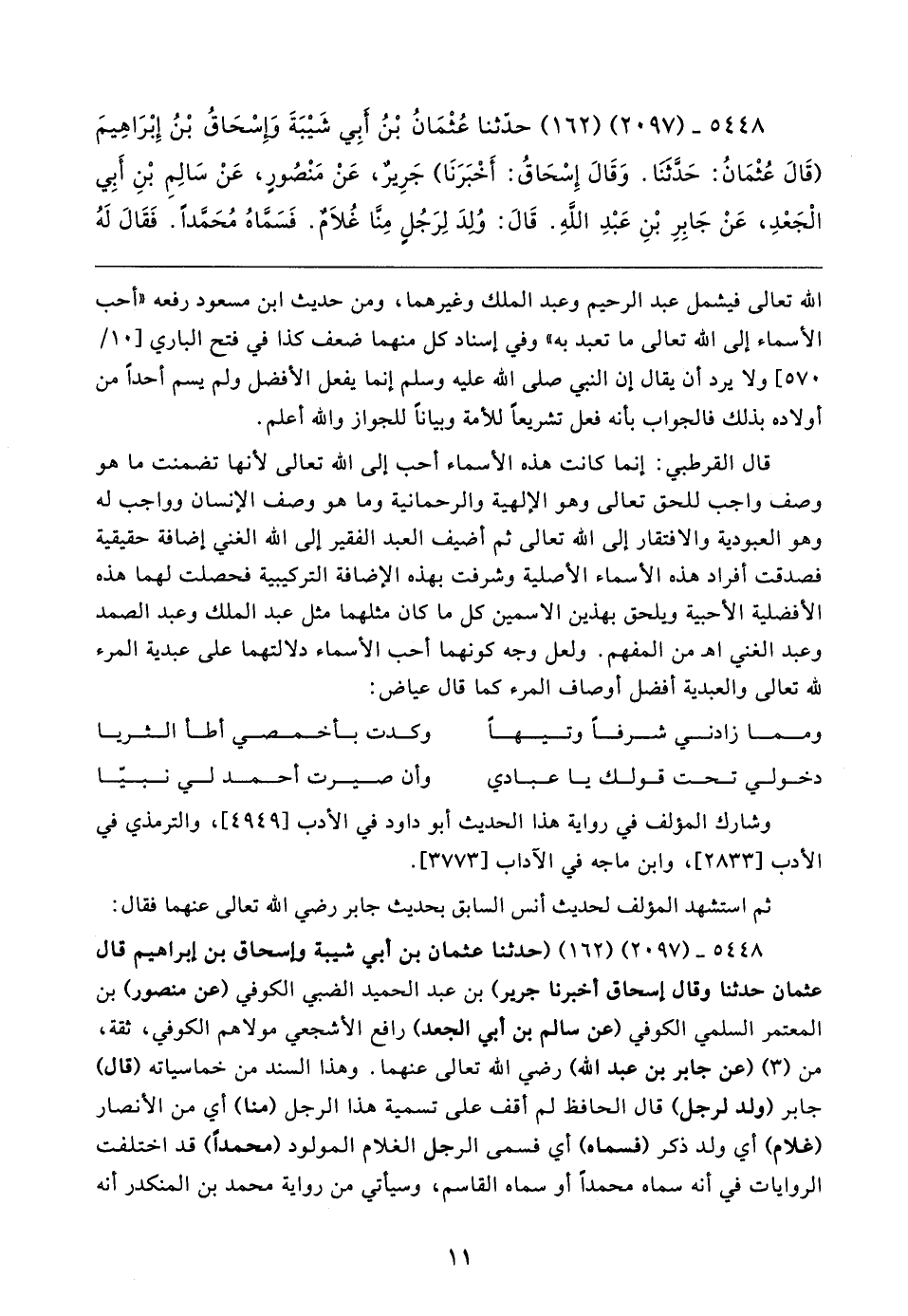 ٥٤٤٨ - (٢٠٩٧) (١٦٢) حدَّثنا عُثْمَانُ بْنُ أَبِي شَيبَةَ وَإِسْحَاقُ بْنُ إِبْرَاهِيمَ (قَال عُثْمَانُ: حَدَّثنَا. وَقَال إِسْحَاقُ: أَخْبَرَنَا) جَرِيرٌ، عَنْ مَنْصُورٍ، عَنْ سَالِمِ بْنِ أَبِي الْجَعْدِ، عَنْ جَابِرٍ بْنِ عَبْدِ اللهِ. قَال: وُلِدَ لِرَجُلٍ مِنَّا غُلامٌ. فَسَمَّاهُ مُحَمَّدًا. فَقَال لَهُ