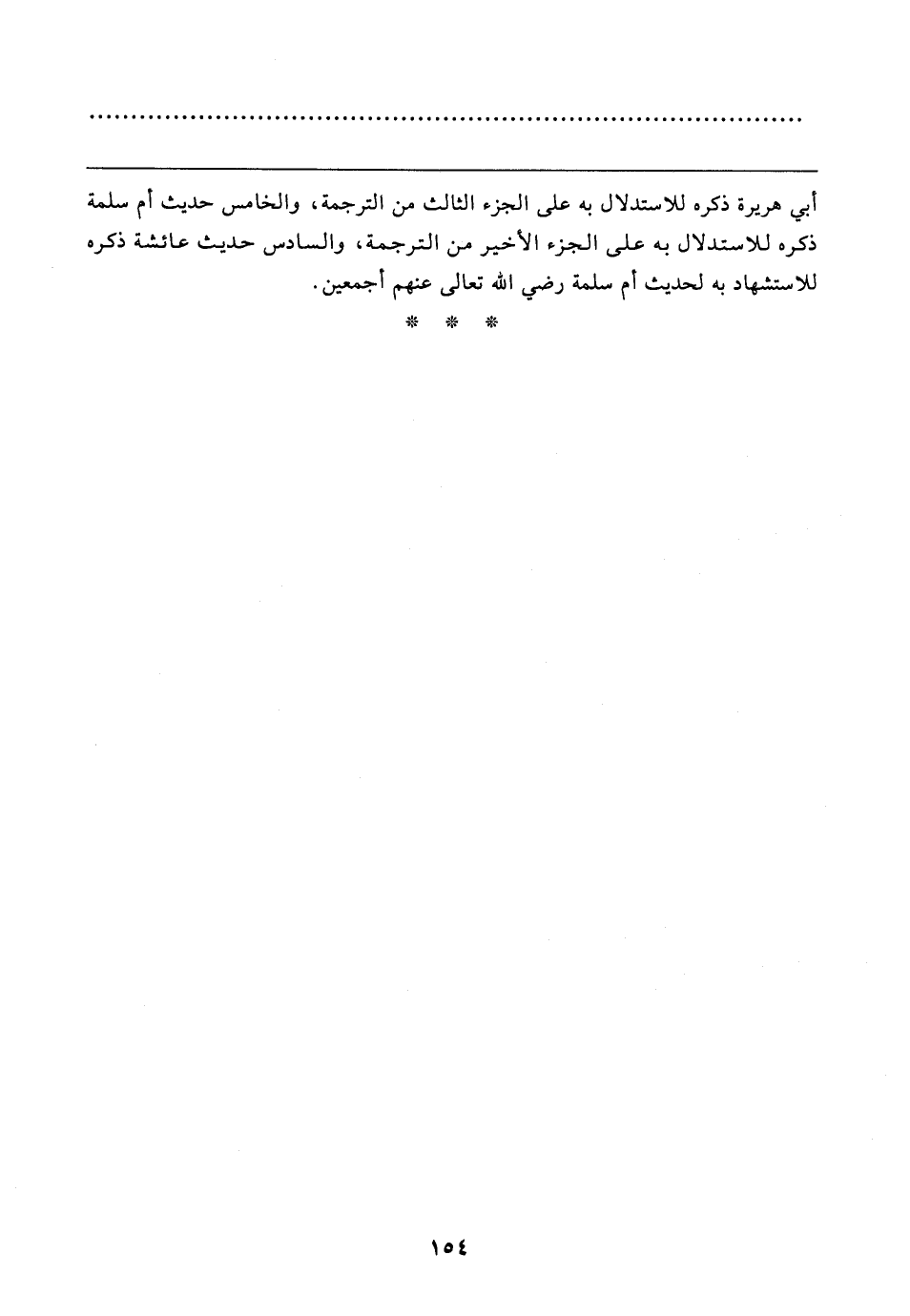 أبي هريرة ذكره للاستدلال به على الجزء الثالث من الترجمة، والخامس حديث أم سلمة ذكره للاستدلال به على الجزء الأخير من الترجمة، والسادس حديث عائشة ذكره للاستشهاد به لحديث أم سلمة رضي الله تعالى عنهم أجمعين.