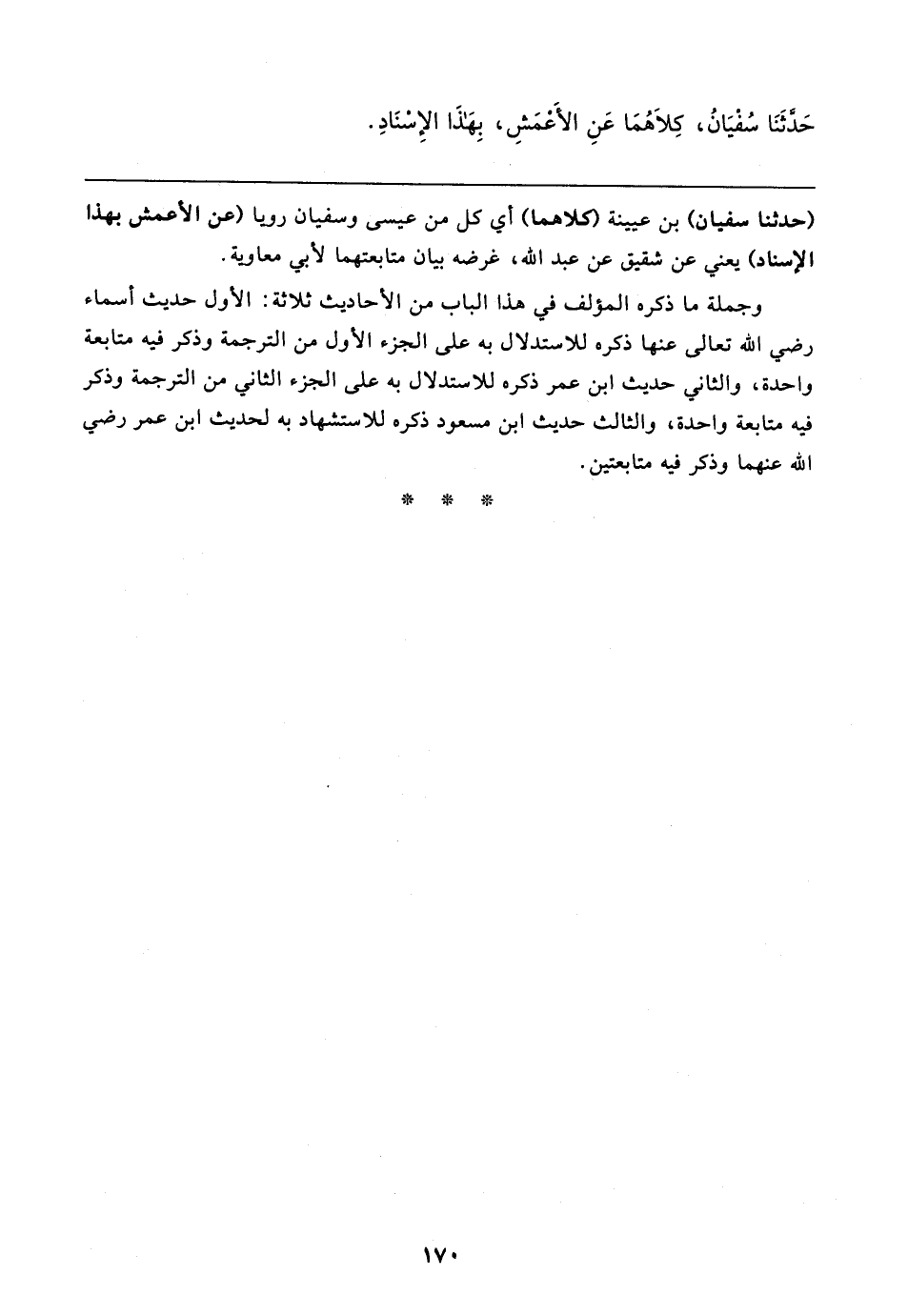 (حَدَّثَنَا سفيان) بن عيينة (كلاهما) أي كل من عيسى وسفيان رويا (عن الأعمش بهذا الإسناد) يعني عن شقيق عن عبد الله، غرضه بيان متابعتهما لأبي معاوية.