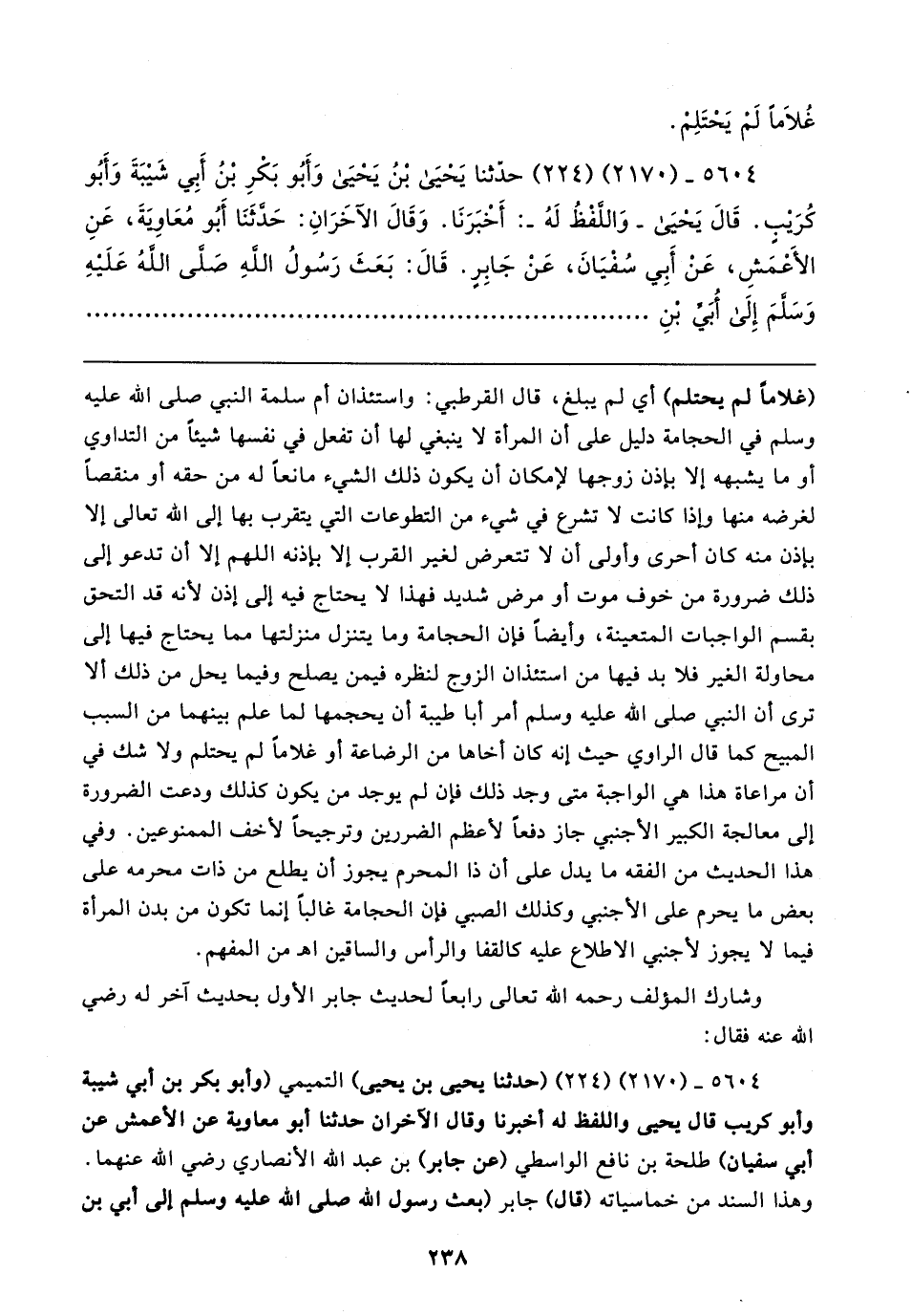 ٥٦٠٤ - (٢١٧٠) (٢٢٤) (حَدَّثَنَا يحيى بن يحيى) التميمي (وأبو بكر بن أبي شيبة وأبو غريب قال يحيى واللفظ له أخبرنا وقال الآخران حَدَّثَنَا أبو معاوية عن الأعمش عن أبي سفيان) طلحة بن نافع الواسطي (عن جابر) بن عبد الله الأنصاري رضي الله عنهما. وهذا السند من خماسياته (قال) جابر (بعث رسول الله صلى الله عليه وسلم إلى أبي بن
