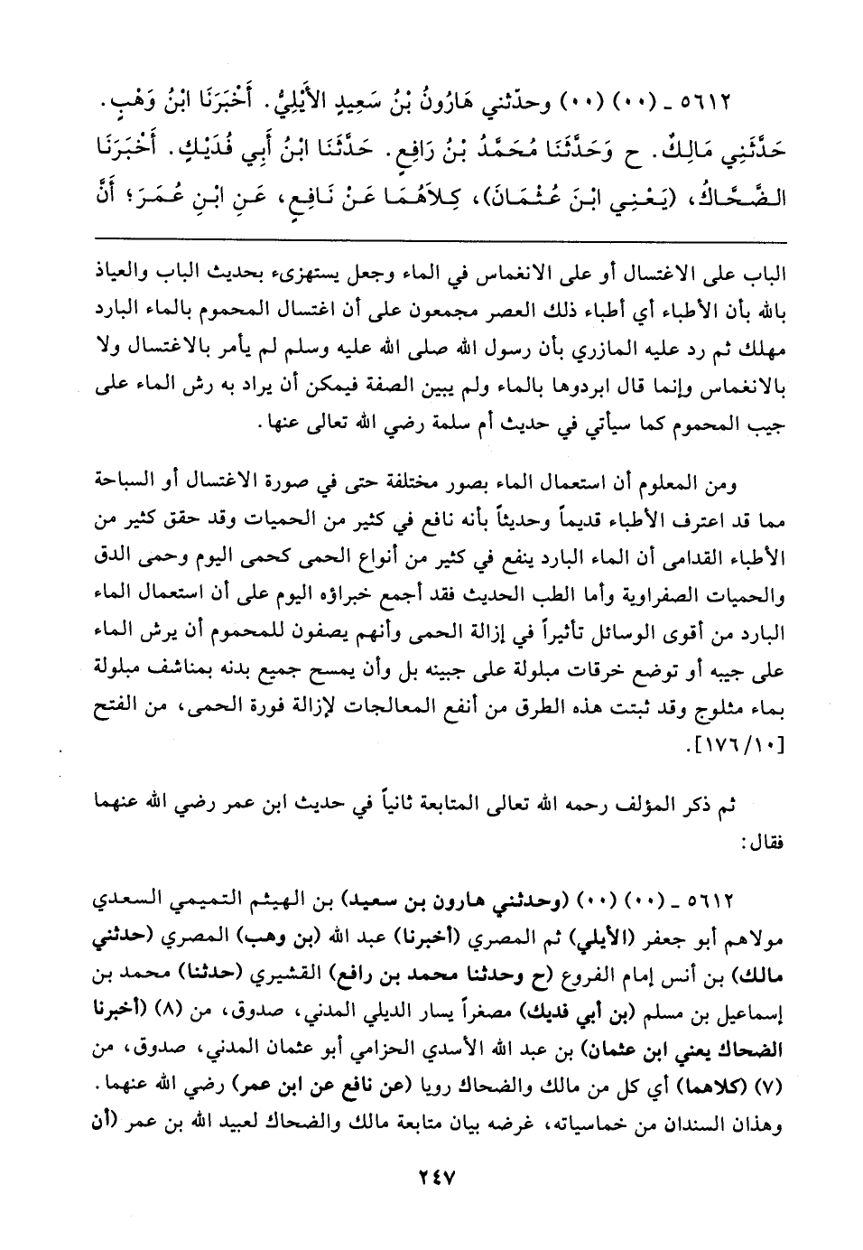 ٥٦١٢ - (٠٠) (٠٠) وحدَّثني هَارُونُ بْنُ سَعِيدٍ الأَيلِيُّ. أَخبَرَنَا ابْنُ وَهْبٍ. حَدَّثَنِي مَالِكٌ. ح وَحدَّثَنَا مُحَمَّدُ بن رَافِعٍ. حَدَّثَنَا ابْنُ أَبِي فُدَيكٍ. أَخبَرَنَا الضَّحَّاكُ، (يَعْنِي ابْنَ عُثْمَانَ)، كِلَاهُمَا عَنْ نَافِعٍ، عَنِ ابْنِ عُمَرَ؛ أَنَّ