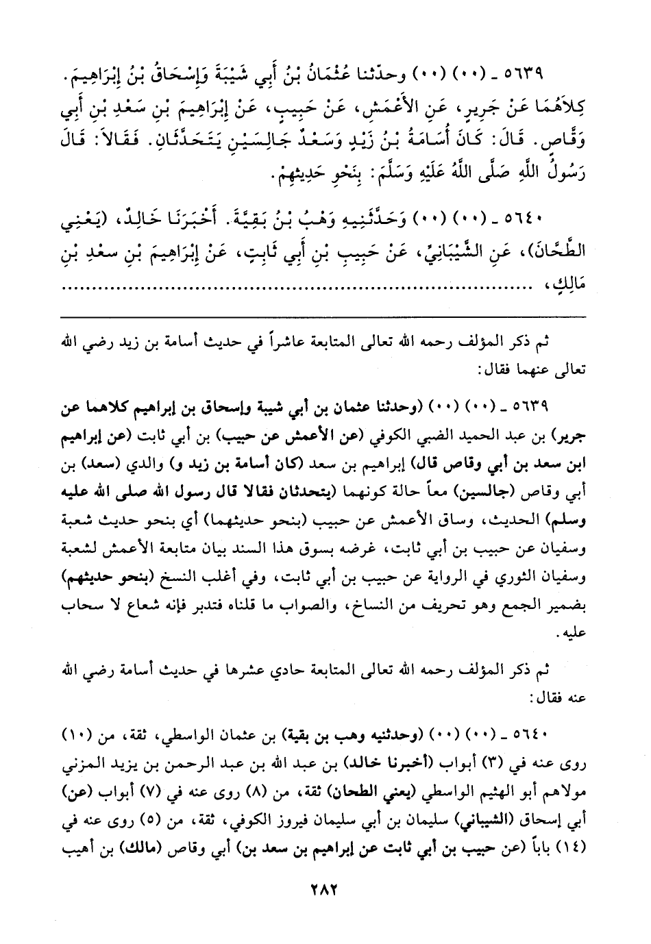 ٥٦٣٩ - (٠٠) (٠٠) وحدّثنا عُثْمَانُ بْنُ أَبِي شَيبَةَ وإسْحَاقُ بْنُ إِبْرَاهِيمَ. كِلاهُمَا عَنْ جَرِيرٍ، عَنِ الأَعْمَشِ، عَن حَبِيبٍ، عَنْ إِبرَاهِيمَ بْنِ سَعْدِ بنِ أَبِي وَقَّاصٍ. قَال: كَانَ أُسَامَةُ بْنُ زَيدٍ وَسَعْدٌ جَالِسَينِ يَتَحَدَّثَانِ. فَقَالا: قَال رَسُولُ اللهِ صَلى اللهُ عَلَيهِ وَسَلمَ: بِنَحْو حَدِيثهِمْ.