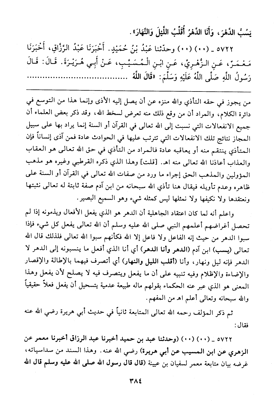 ٥٧٢٢ - (٠٠) (٠٠) (وحدثنا عبد بن حميد أخبرنا عبد الرزاق أخبرنا معمر عن الزهري عن ابن المسيب عن أبي هريرة) رضي الله عنه. وهذا السند من سداسياته، غرضه بيان متابعة معمر لسفيان بن عيينة (قال قال رسول الله صلى الله عليه وسلم قال الله