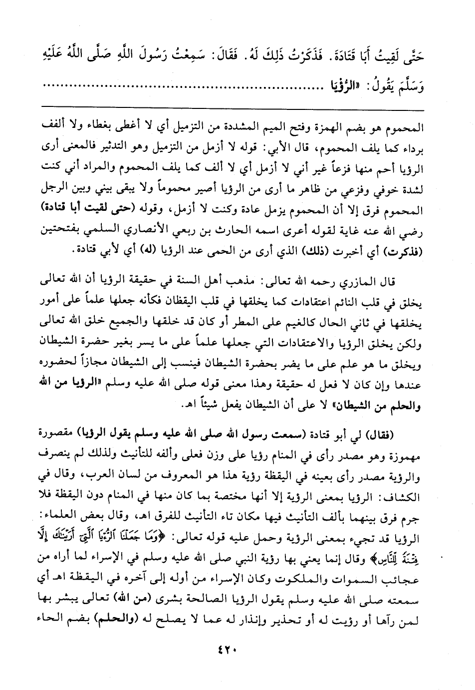 حَتَّى لَقِيتُ أَبَا قَتَادَةَ. فَذَكَرْتُ ذَلِكَ لَهُ. فَقَال: سَمِعْتُ رَسُولَ اللهِ صلى الله عليه وسلم يَقُولُ: "الرُّؤْيَا