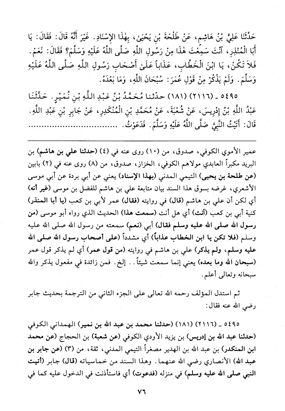 حَدَّثَنَا عَلِيُّ بْنُ هَاشِمٍ، عَنْ طَلْحَةَ بْنِ يَحْيَى, بِهَذَا الإِسْنَادِ. غَيرَ أَنَّهُ قَال: فَقَال: يَا أَبَا الْمُنْذِرِ, آنْتَ سَمِعْتَ هَذَا مِنْ رَسُولِ اللَّهِ صلى الله عليه وسلم؟ فَقَال: نَعَمْ. فَلَا تَكُنْ, يَا ابْنَ الْخَطَّابِ, عَذَابًا عَلَى أَصْحَابِ رَسُولِ اللَّهِ صلى الله عليه وسلم. وَلَمْ يَذْكُرْ مِنْ قَوْلِ عُمَرَ: سُبْحَانَ اللَّهِ , وَمَا بَعْدَهُ.
