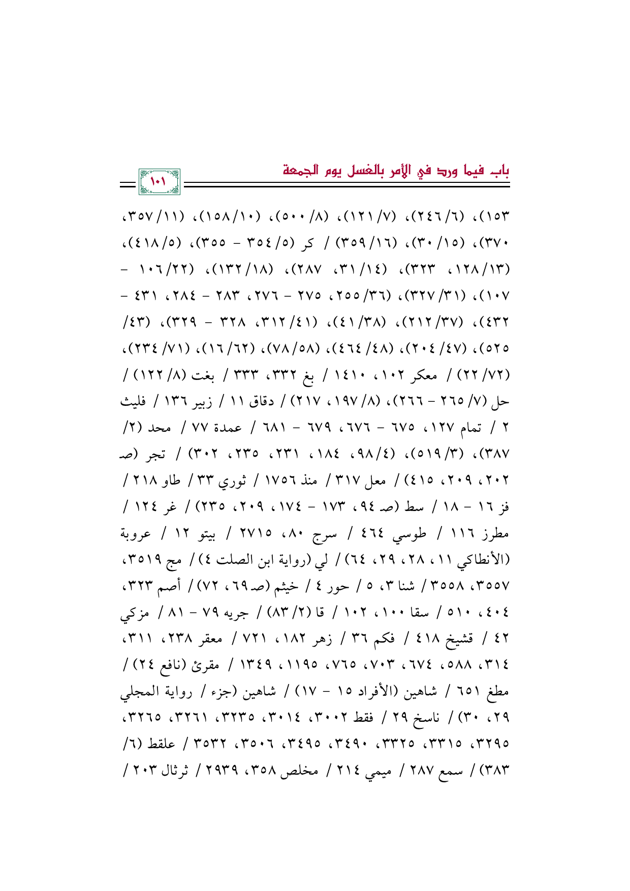 -١٠٧)، (٣١/ ٣٢٧)، (٣٦/ ٢٥٥، ٢٧٥ - ٢٧٦، ٢٨٣ - ٢٨٤، ٤٣١ - ٤٣٢)، (٣٧/ ٢١٢)، (٣٨/ ٤١)، (٤١/ ٣١٢، ٣٢٨ - ٣٢٩)، (٤٣/ ٥٢٥)، (٤٧/ ٢٠٤)، (٤٨/ ٤٦٤)، (٥٨/ ٧٨)، (٦٢/ ١٦)، (٧١/ ٢٣٤)، (٧٢/ ٢٢) / معكر ١٠٢، ١٤١٠/ بغ ٣٣٢، ٣٣٣/ بغت (٨/ ١٢٢) / حل (٧/ ٢٦٥ - ٢٦٦)، (٨/ ١٩٧، ٢١٧) / دقاق ١١/ زبير ١٣٦/ فليث ٢/ تمام ١٢٧، ٦٧٥ - ٦٧٦، ٦٧٩ - ٦٨١/ عمدة ٧٧/ محد (٢/ ٣٨٧)، (٣/ ٥١٩)، (٤/ ٩٨، ١٨٤، ٢٣١، ٢٣٥، ٣٠٢) / تجر (صـ ٢٠٢، ٢٠٩، ٤١٥) / معل ٣١٧/ منذ ١٧٥٦/ ثوري ٣٣/ طاو ٢١٨/ فز ١٦ - ١٨/ سط (صـ ٩٤، ١٧٣ - ١٧٤، ٢٠٩، ٢٣٥) / غر ١٢٤/ مطرز ١١٦/ طوسي ٤٦٤/ سرج ٨٠، ٢٧١٥/ بيتو ١٢/ عروبة (الأنطاكي ١١، ٢٨، ٢٩، ٦٤) / لي (رواية ابن الصلت ٤) / مج ٣٥١٩، ٣٥٥٧، ٣٥٥٨/ شنا ٣، ٥/ حور ٤/ خيثم (صـ ٦٩، ٧٢) / أصم ٣٢٣، ٤٠٤، ٥١٠/ سقا ١٠٠، ١٠٢/ قا (٢/ ٨٣) / جريه ٧٩ - ٨١/ مزكي ٤٢/ قشيخ ٤١٨/ فكم ٣٦/ زهر ١٨٢، ٧٢١/ معقر ٢٣٨، ٣١١، ٣١٤، ٥٨٨، ٦٧٤، ٧٠٣، ٧٦٥، ١١٩٥، ١٣٤٩/ مقرئ (نافع ٢٤) / مطغ ٦٥١/ شاهين (الأفراد ١٥ - ١٧) / شاهين (جزء/ رواية المجلي ٢٩، ٣٠) / ناسخ ٢٩/ فقط ٣٠٠٢، ٣٠١٤، ٣٢٣٥، ٣٢٦١، ٣٢٦٥، ٣٢٩٥، ٣٣١٥، ٣٣٢٥، ٣٤٩٠، ٣٤٩٥، ٣٥٠٦، ٣٥٣٢/ علقط (٦/ ٣٨٣) / سمع ٢٨٧/ ميمي ٢١٤/ مخلص ٣٥٨، ٢٩٣٩/ ثرثال ٢٠٣/