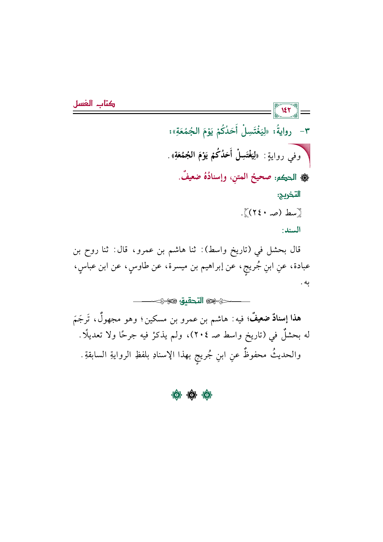 قال بحشل في (تاريخ واسط): ثنا هاشم بن عمرو، قال: ثنا روح بن عبادة، عنِ ابنِ جُريجٍ، عن إبراهيم بن ميسرة، عن طاوسٍ، عن ابن عباسٍ، به.