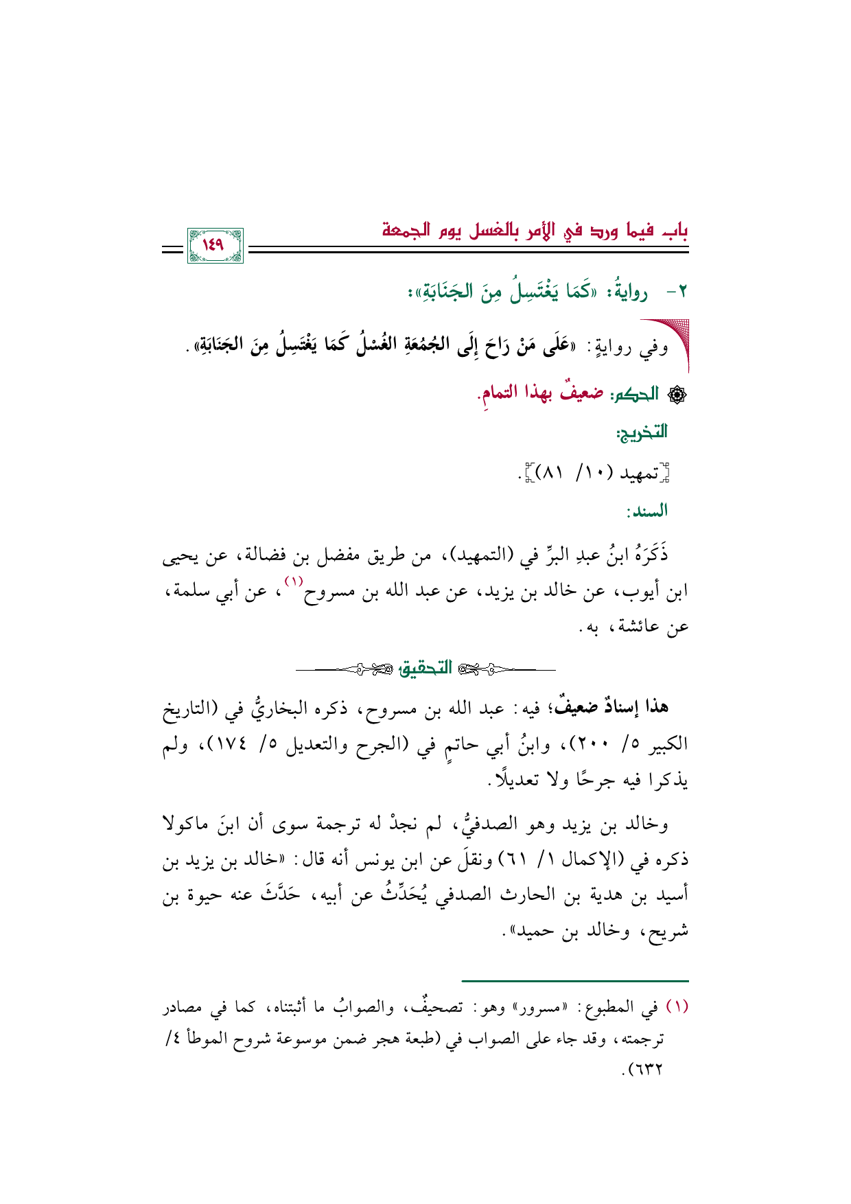(¬١) في المطبوع: "مسرور" وهو: تصحيفٌ، والصوابُ ما أثبتناه، كما في مصادر ترجمته، وقد جاء على الصواب في (طبعة هجر ضمن موسوعة شروح الموطأ ٤/ ٦٣٢).