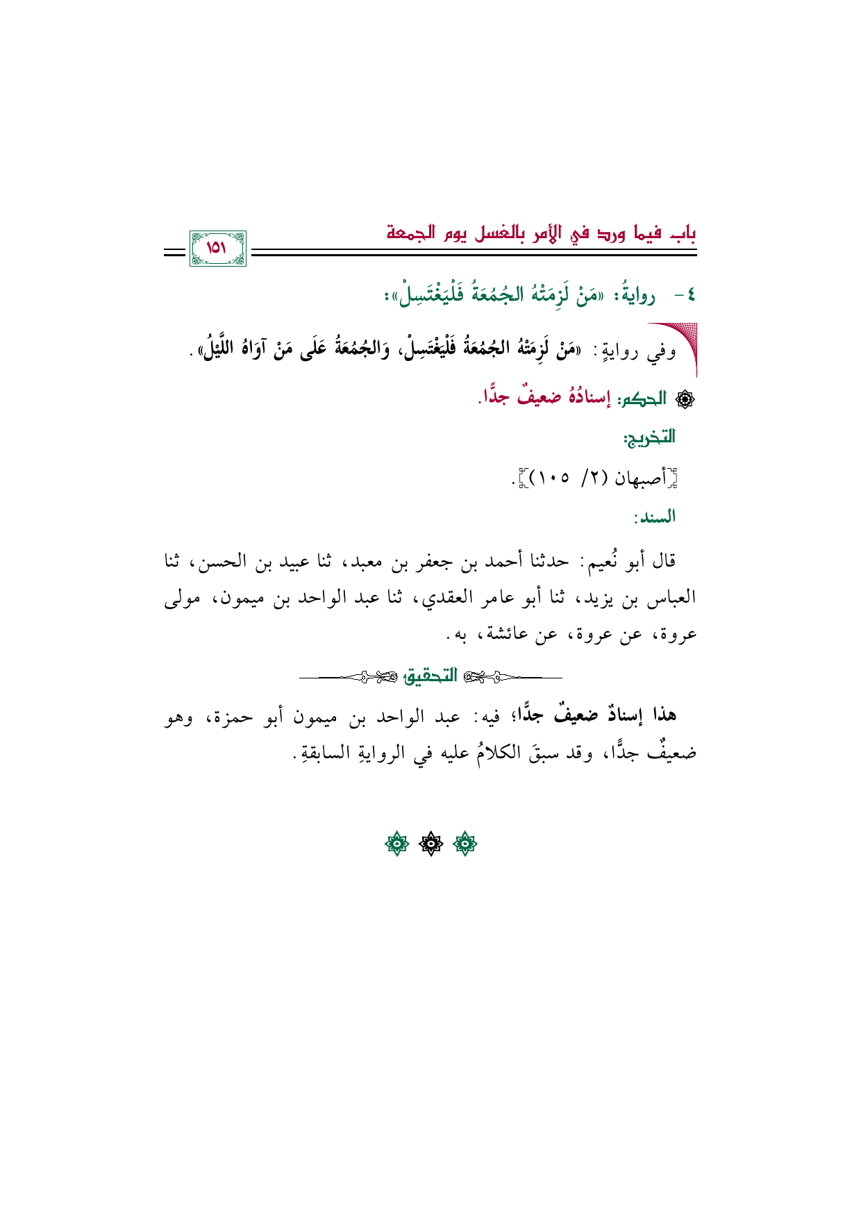 قال أبو نُعيم: حدثنا أحمد بن جعفر بن معبد، ثنا عبيد بن الحسن، ثنا العباس بن يزيد، ثنا أبو عامر العقدي، ثنا عبد الواحد بن ميمون، مولى عروة، عن عروة، عن عائشة، به.