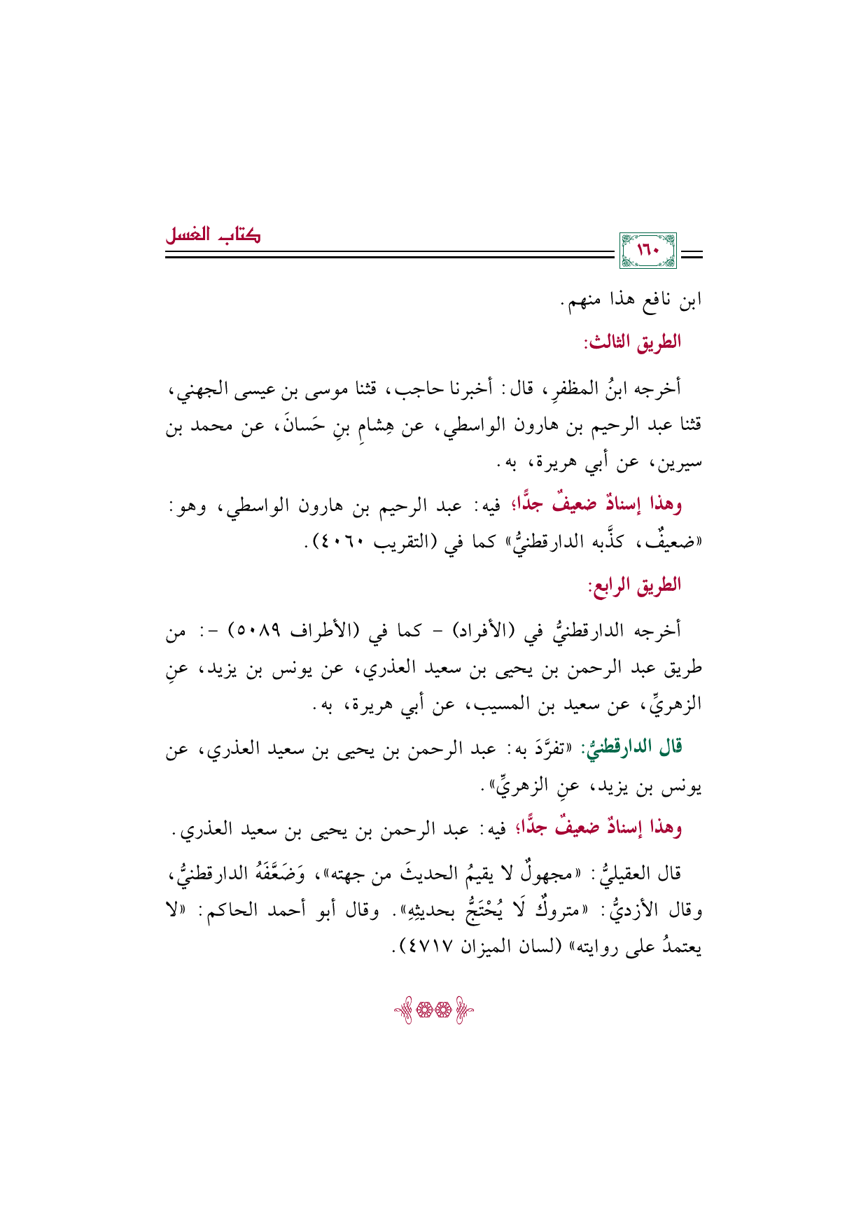 قال الدارقطنيُّ: "تفرَّدَ به: عبد الرحمن بن يحيى بن سعيد العذري، عن يونس بن يزيد، عنِ الزهريِّ".