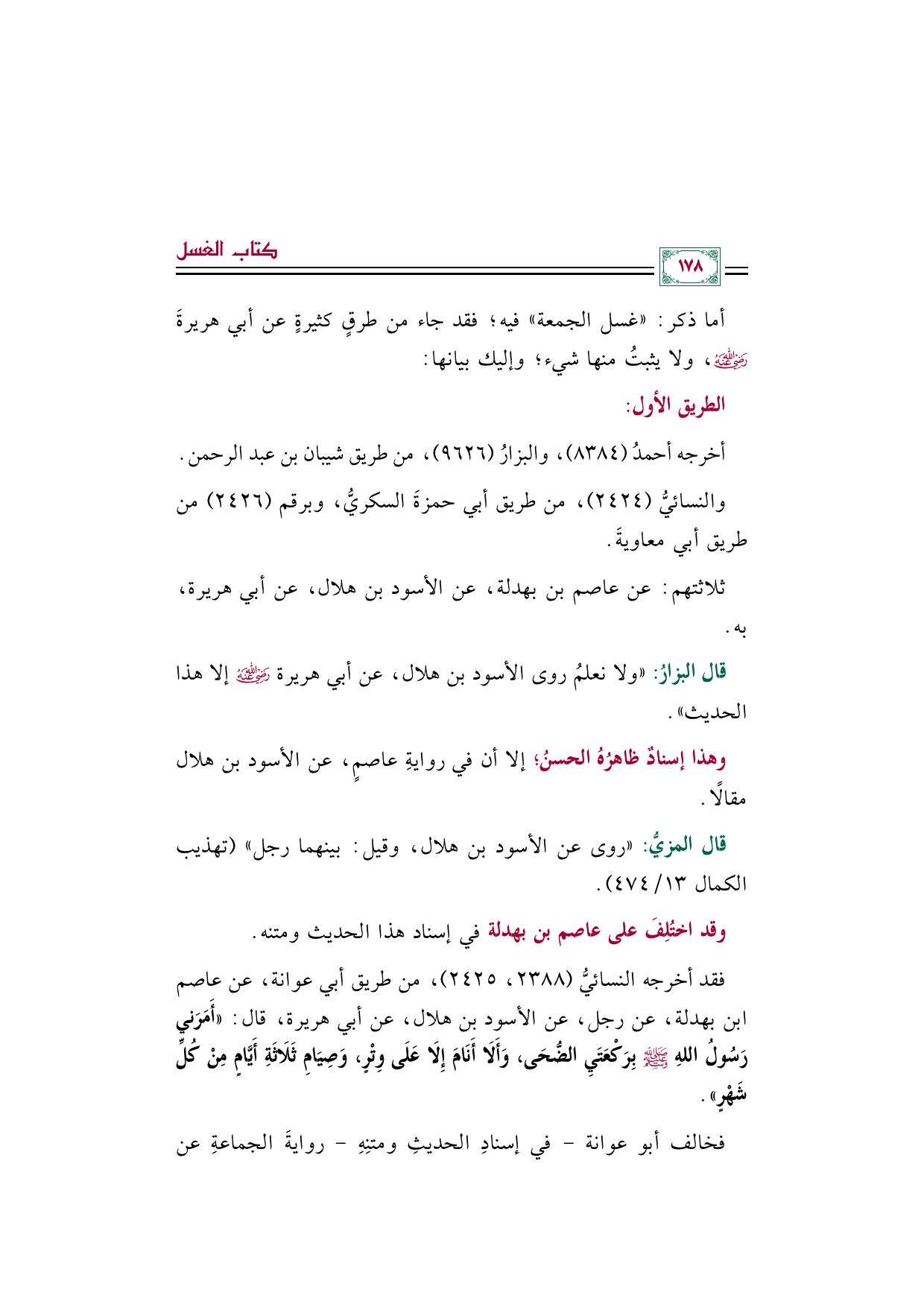 وهذا إسنادٌ ظاهرُهُ الحسنُ؛ إلا أن في روايةِ عاصمٍ، عن الأسود بن هلال مقالًا.