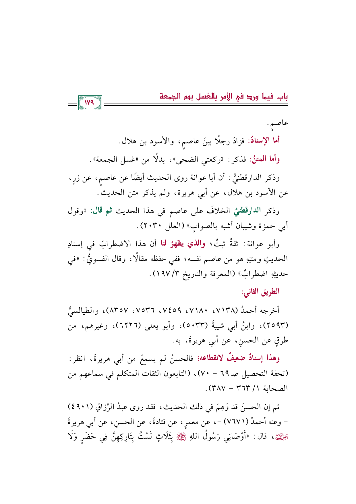 وذكر الدارقطنيُّ الخلافَ على عاصم في هذا الحديث ثم قال: "وقول أبي حمزة وشيبان أشبه بالصوابِ" (العلل ٢٠٣٠).