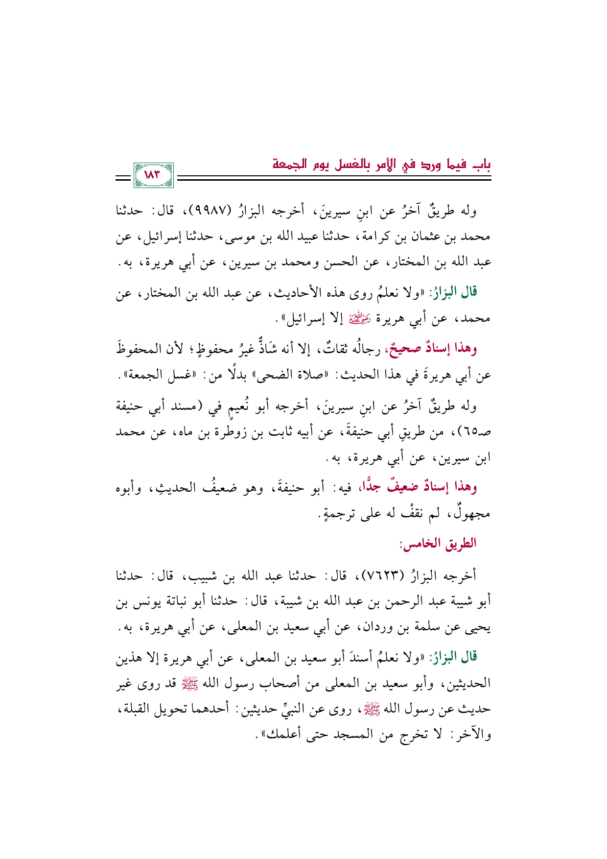 وهذا إسنادٌ صحيحٌ، رجالُه ثقاتٌ، إلا أنه شَاذٌّ غيرُ محفوظٍ؛ لأن المحفوظَ عن أبي هريرةَ في هذا الحديث: "صلاة الضحى" بدلًا من: "غسل الجمعة".