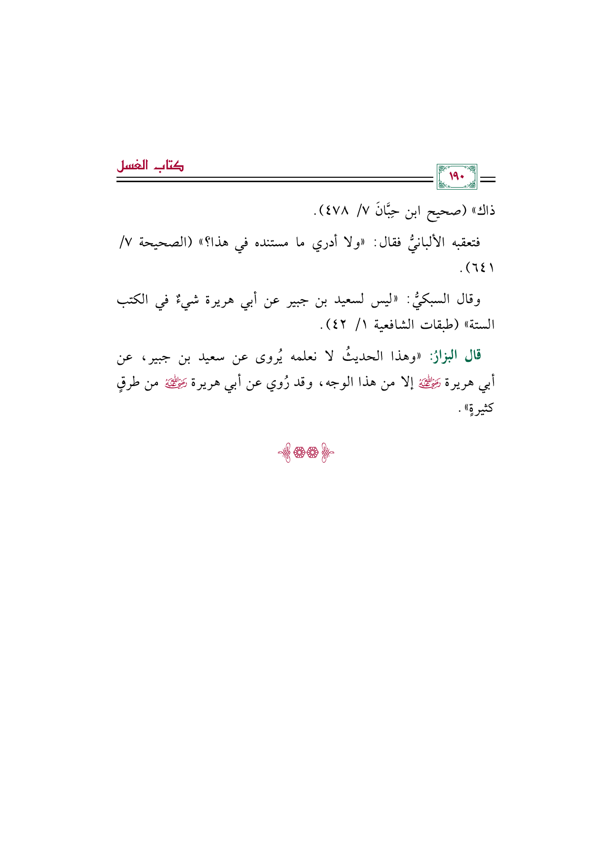 وقال السبكيُّ: "ليس لسعيد بن جبير عن أبي هريرة شيءٌ في الكتب الستة" (طبقات الشافعية ١/ ٤٢).